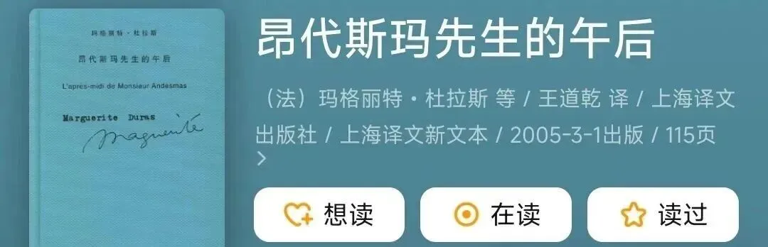 《昂代斯玛先生的午后》(L’après-midi de Monsieur Andesmas)是玛格丽特・杜拉斯创作的中篇小说,以极简叙事与强烈氛围感,刻画一位迟暮老人在夏日午后的漫长等待,浓缩衰老、孤独、父爱与时间流逝的沉重主题