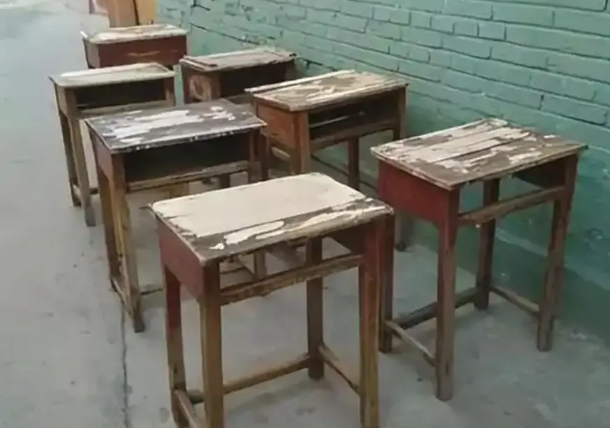 这些掉漆的老课桌,小时候坐过的看到准有感觉,桌板上大块油漆剥落、木头腿有歪有斜,抽屉里能摸出几只铅笔头,开学那天,班里同学抢着挑新一点的坐,我拿小刀在桌沿上刻过名字,还藏过烟火炮竹和糖纸,夏天汗哒哒地黏桌面,冬天冻得打颤,老课桌椅吱呀一响,屋里全是小孩的脚步,奶奶说她那会儿读学堂凳子还是条凳,俺们就是一代一代坐过来,现在新课桌又宽又高,还有能午休的靠背,屋里再也没有当年“课桌敲读书声”。