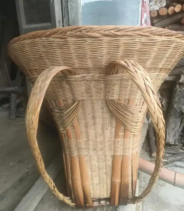 竹篾编得密不透风的背篼,有点像北方的背筐,可这种可不只装菜装柴,小时候谷收回来,家里人就专门用这个,小粒的玉米稻谷往里一倒,怎么晃都“漏不掉”,山里务农靠它驮肥料、挑淋水、小孩爬上爬下还喜欢钻进去藏猫猫,没人专门教怎么背,家里大人一绑带子,肩膀卡一靠就能走半山头,过去乡里乡亲讲背篼看手艺,有的编得粗,有的编得细,背着走了几十年不散架,现在超市塑料袋一拎,背篼在门角落灰,年轻人只把它当摆设用了。