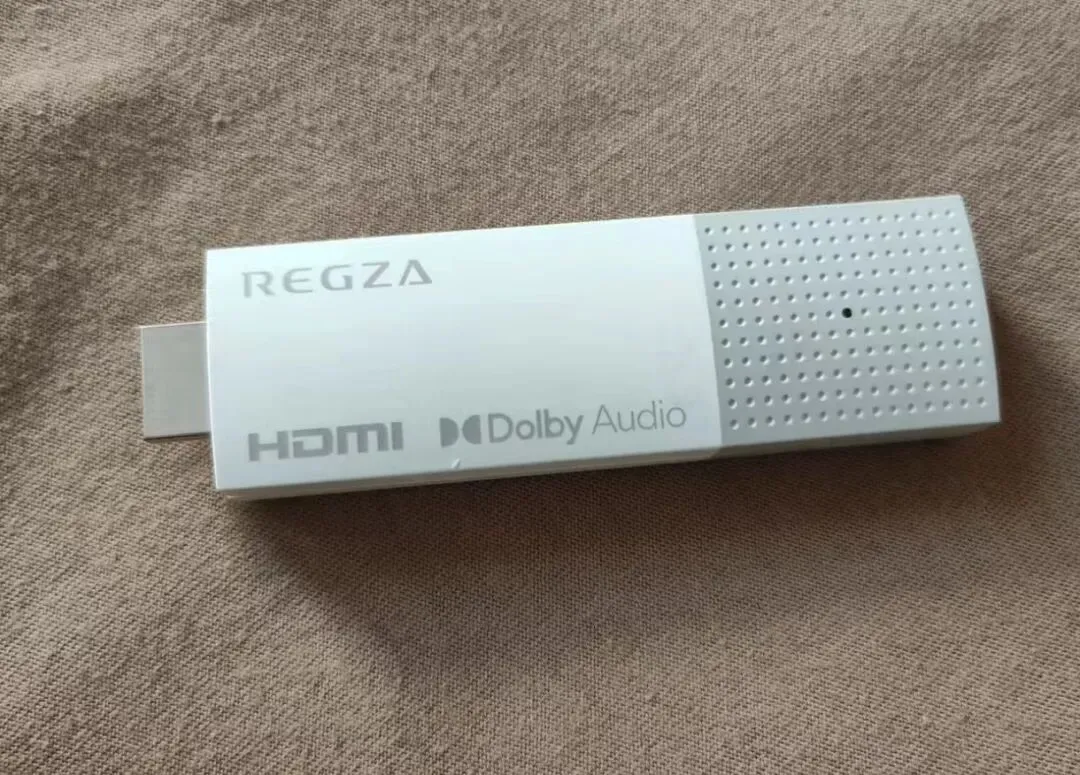 它应该是最小的安卓小主机,大概就比一元钱的打火机大一点,顶部有一个HDMI接口,外壳上面还印着Dolby Audio(杜比音效)。