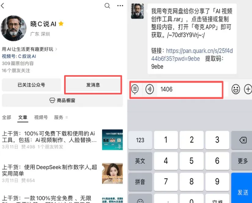 获取路径:单击老师头像进入公众号–看到“发送信息”项—单击键盘图标文本框输入数字:1406 即可