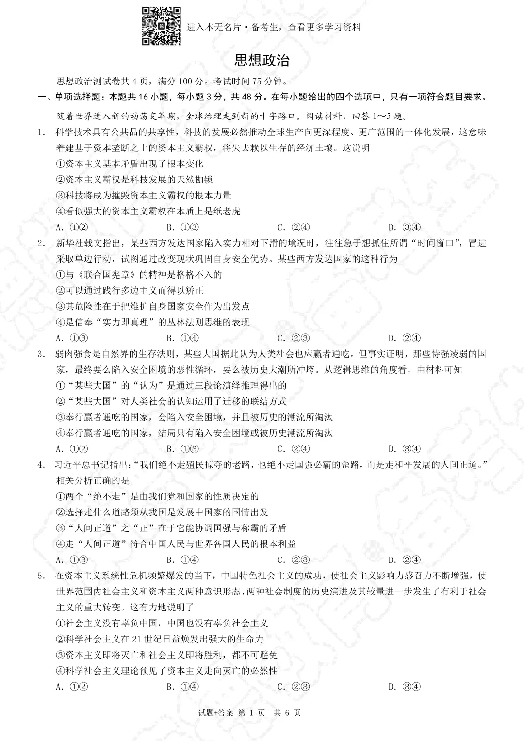 免费获取完整版试卷及解析,无水印电子档的方式在下面,