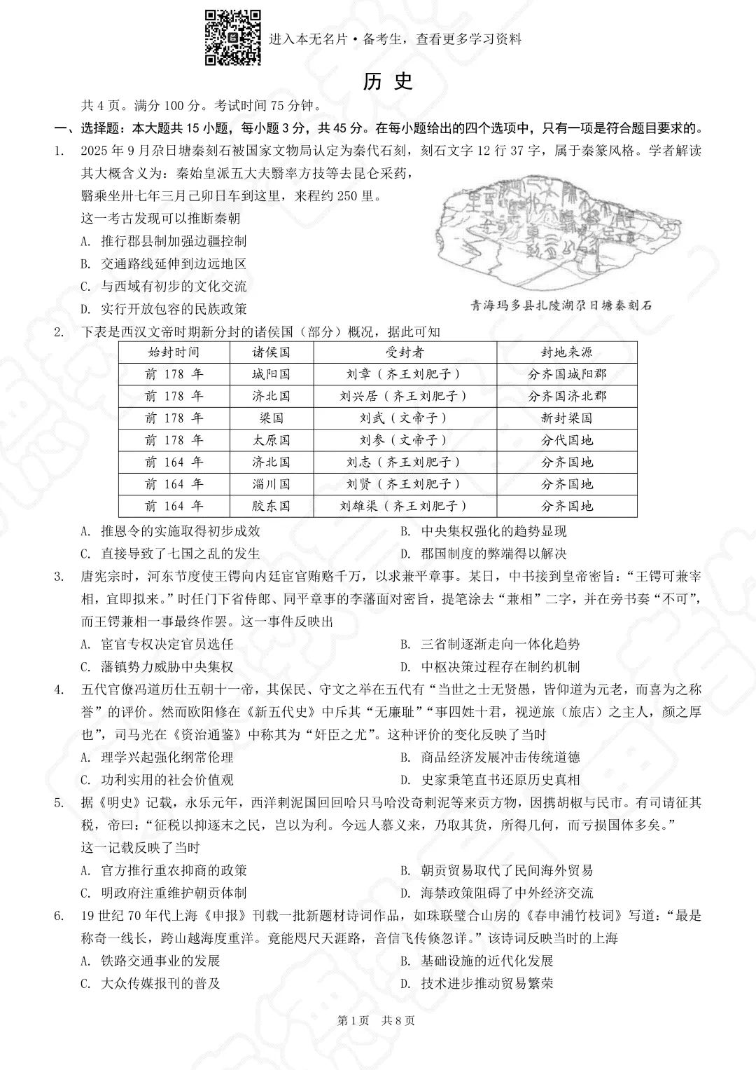 【中考真题】2025青海省中考数学真题试卷、2023-2025近三年合集、2016-2025近十年合集(可下载打印);