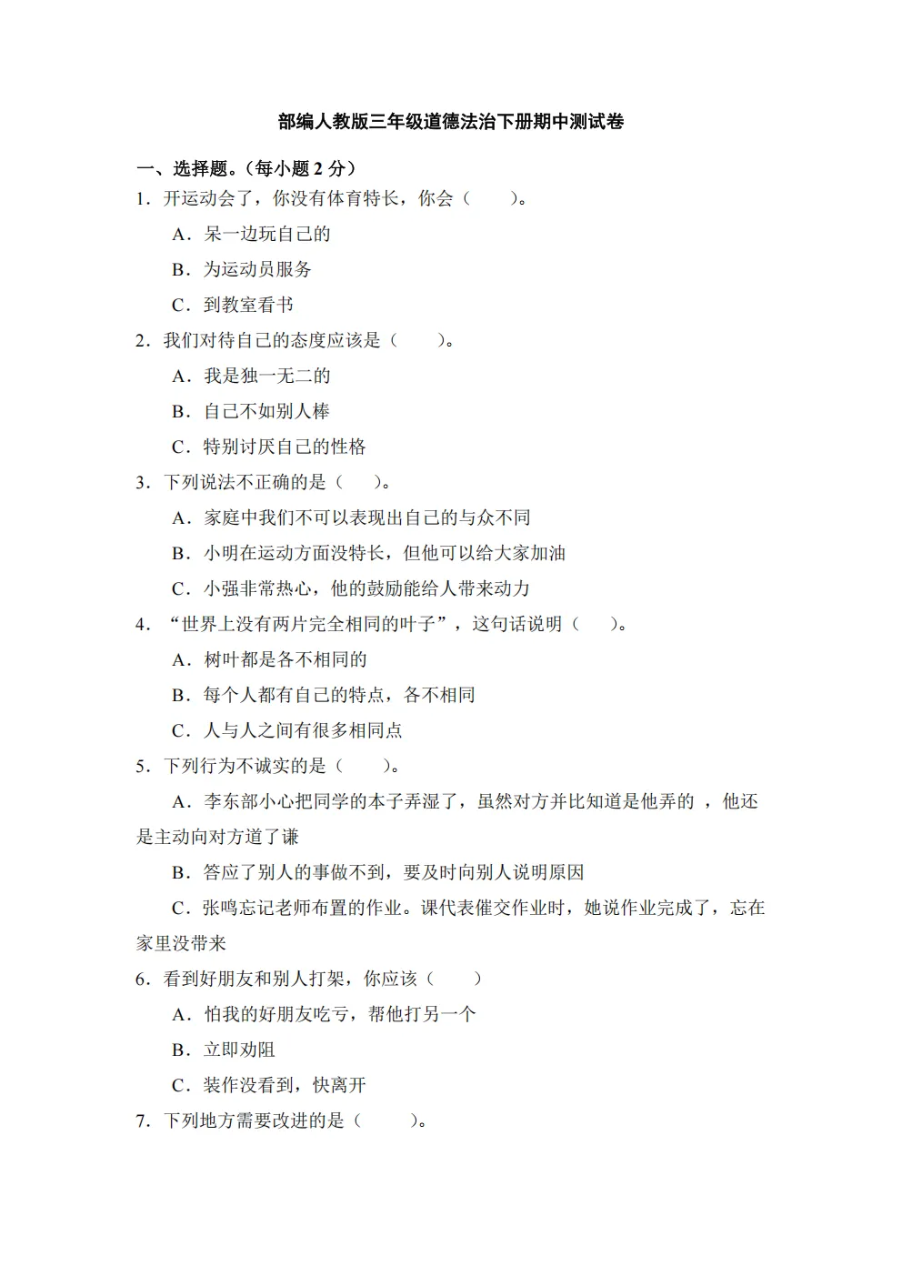 🌟今天给家长们分享的是26春三年级下册人教部编版《道德与法治期中测试卷》共2套(附答案)高清电子版可打印,需要的家长抓紧领取一份给孩子打印🖨️出来,让孩子练一练吧✍🏻欢迎分享到班级群或朋友圈,方便家长打印出来助力孩子高效学习!