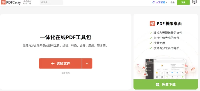 如其名字,PDF糖果。包含处理PDF文件所需的所有工具:编辑、转换、合并、压缩、签名等。英文版界面,自己添加网页自动翻译。