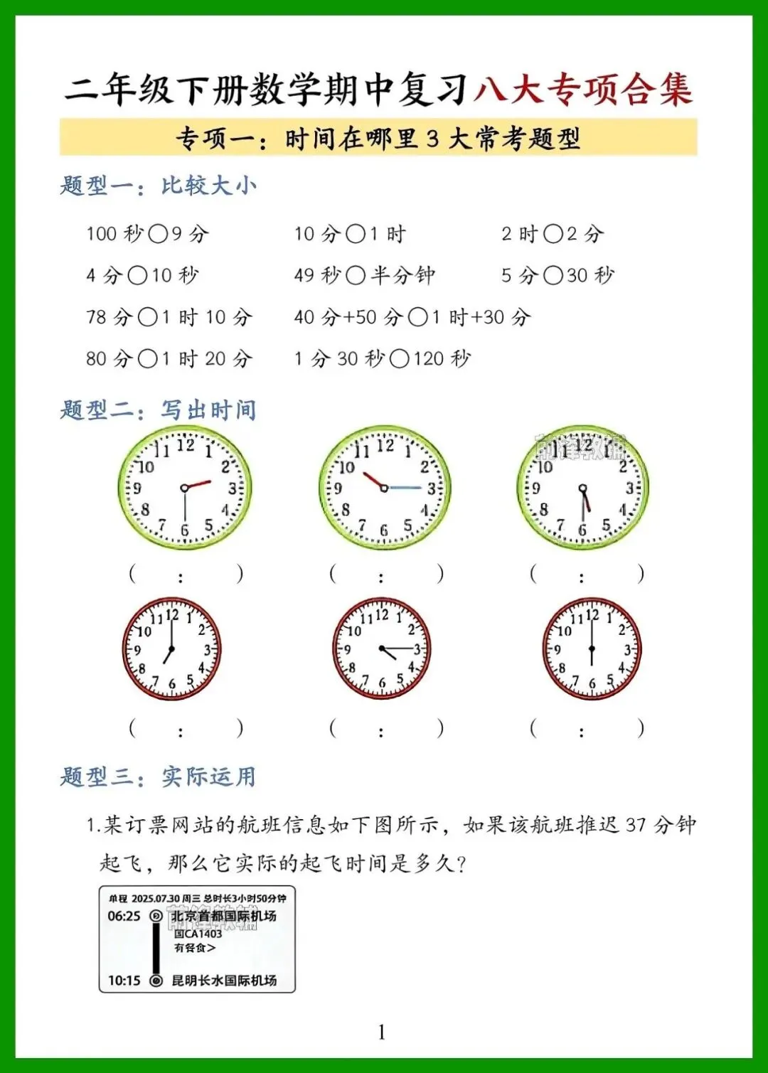 ⏰二年级下册数学期中复习|八大专项合集提分必备这份二年级下册数学期中复习八大专项合集,帮孩子精准攻克考点,高效冲刺期中!