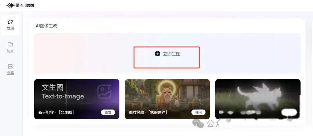 登录后选择”立即生图”,粘贴提示词,选择增强模型。