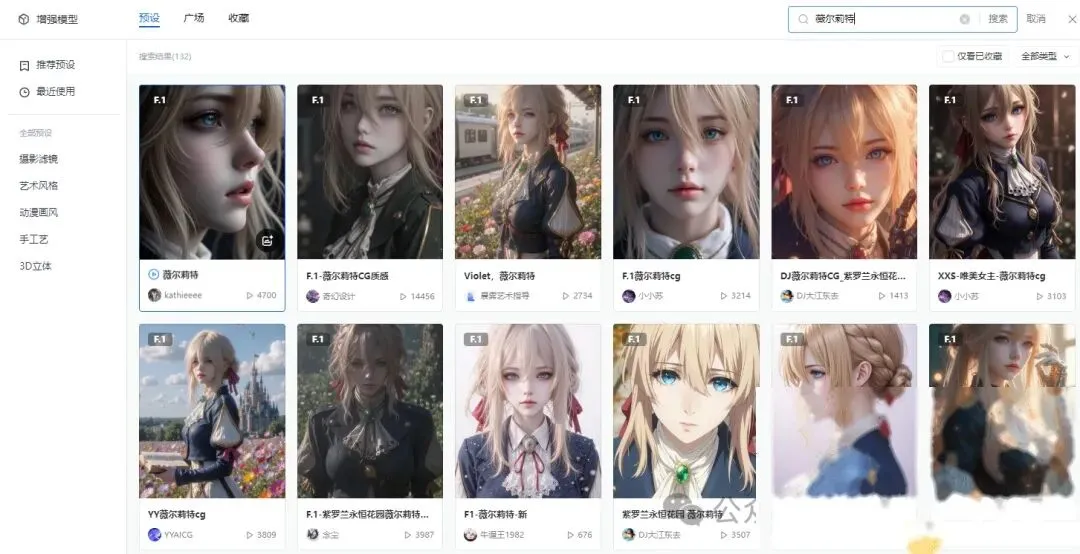 模型选择这里说一下:原博主做的是动漫人物”薇尔莉特”。你想做同款,直接搜”薇尔莉特”;想自己设计人物,搜”CG”就行。