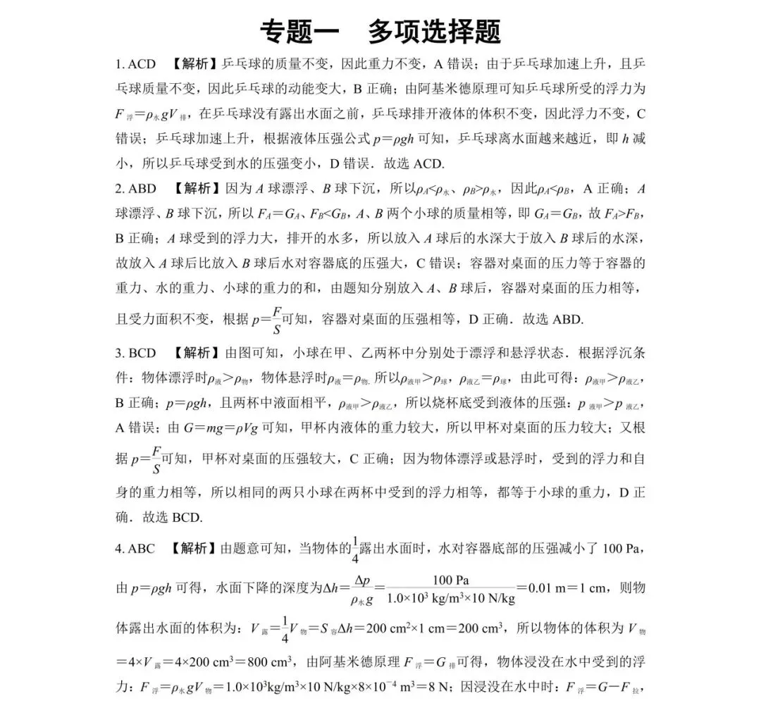 可打印 | 2026中考物理专项复习01:多项选择题(含答案)