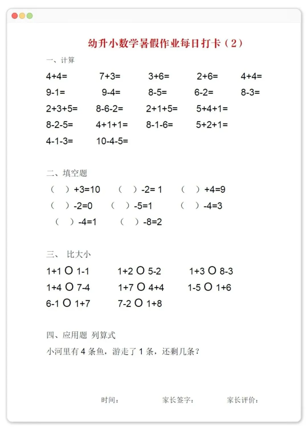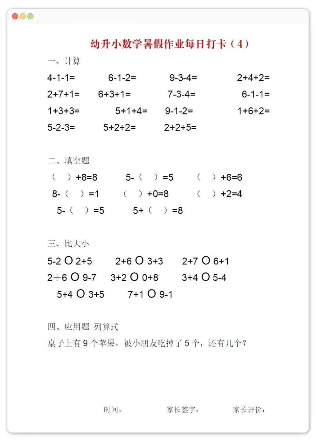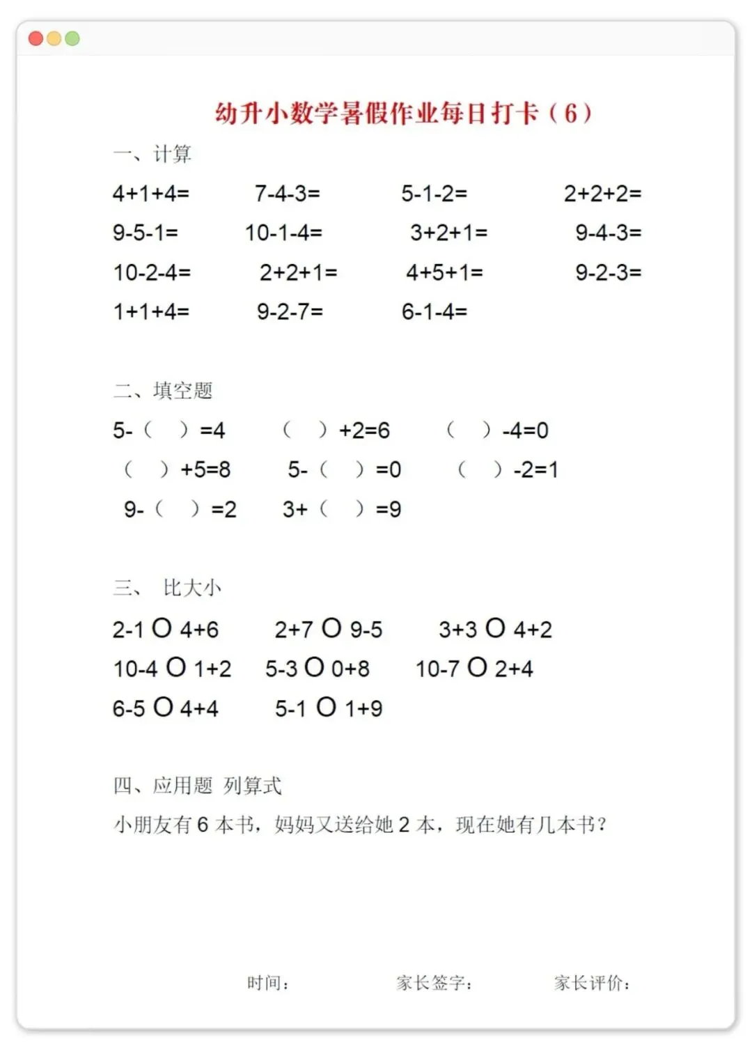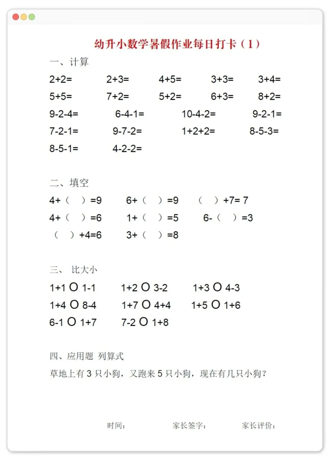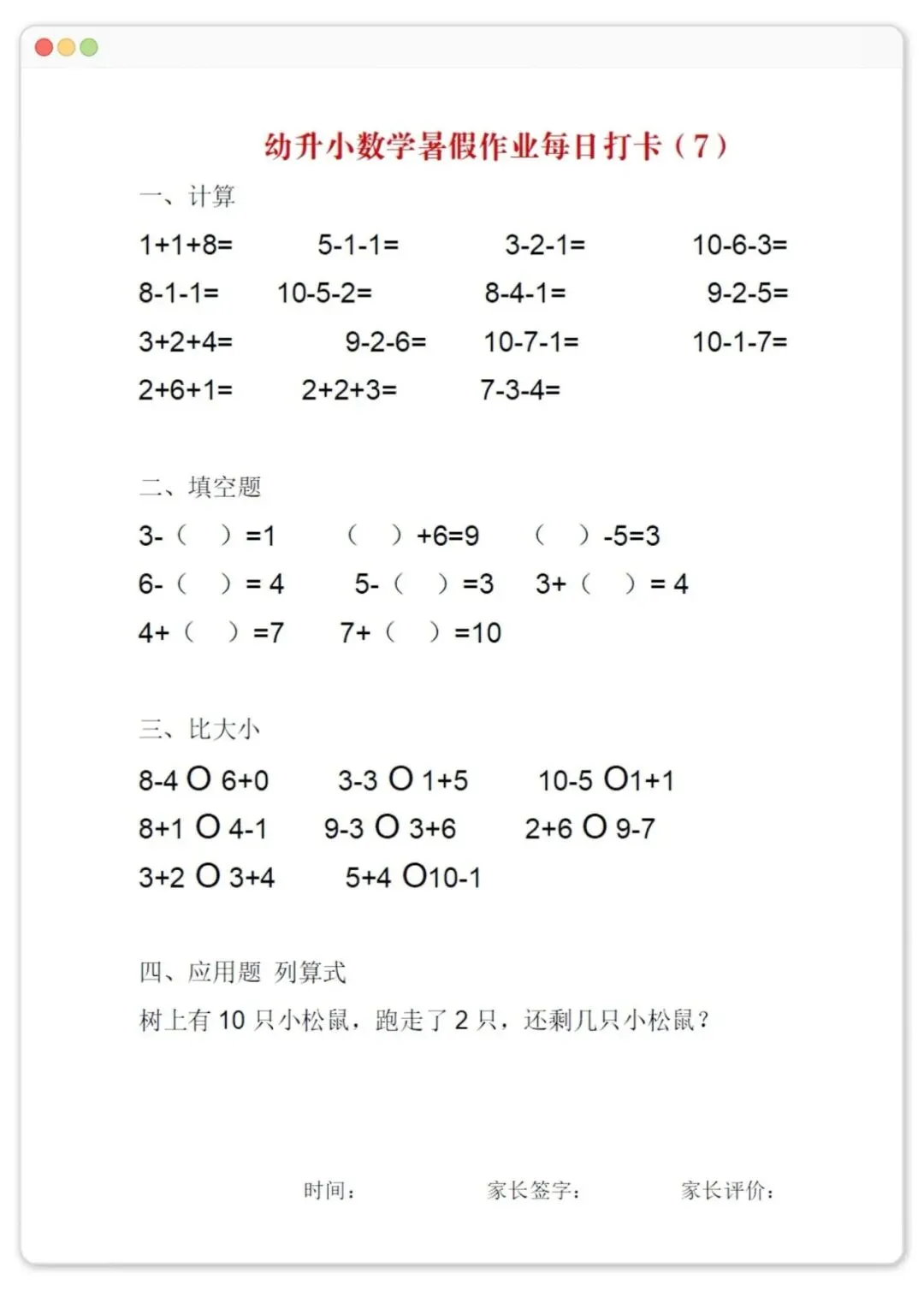 幼小衔接数学|25天每日一练,可打印 幼小衔接数学25天每日一练,口算、填空、比大小、应用题全涵盖,难度循序渐进,每天练习10分钟,夯实基础,培养思维能力,幼儿园大班孩子练一练,提升数感,一年级开学不慌!