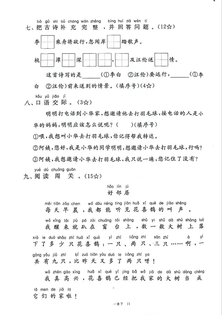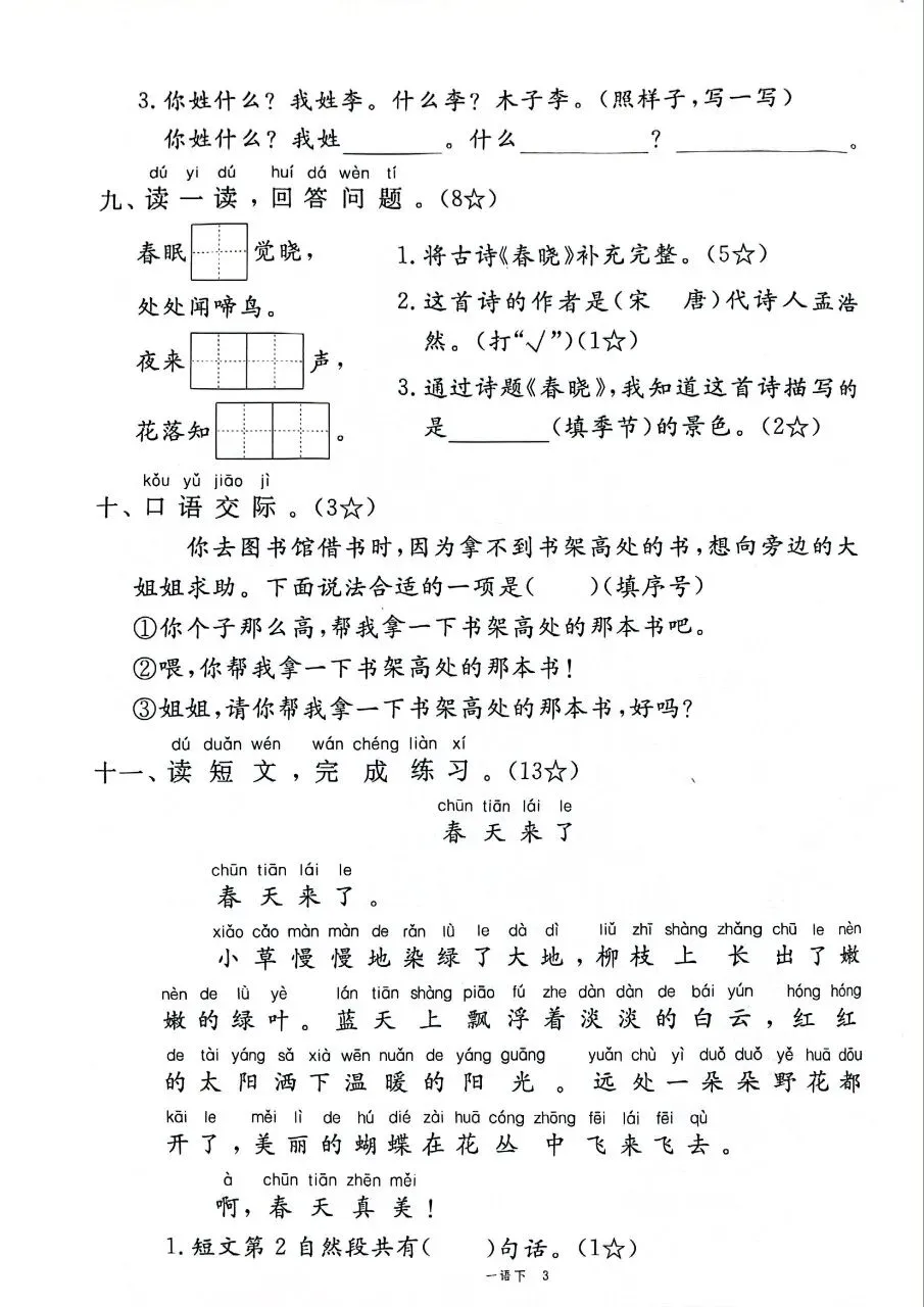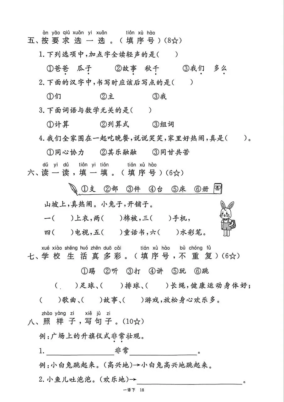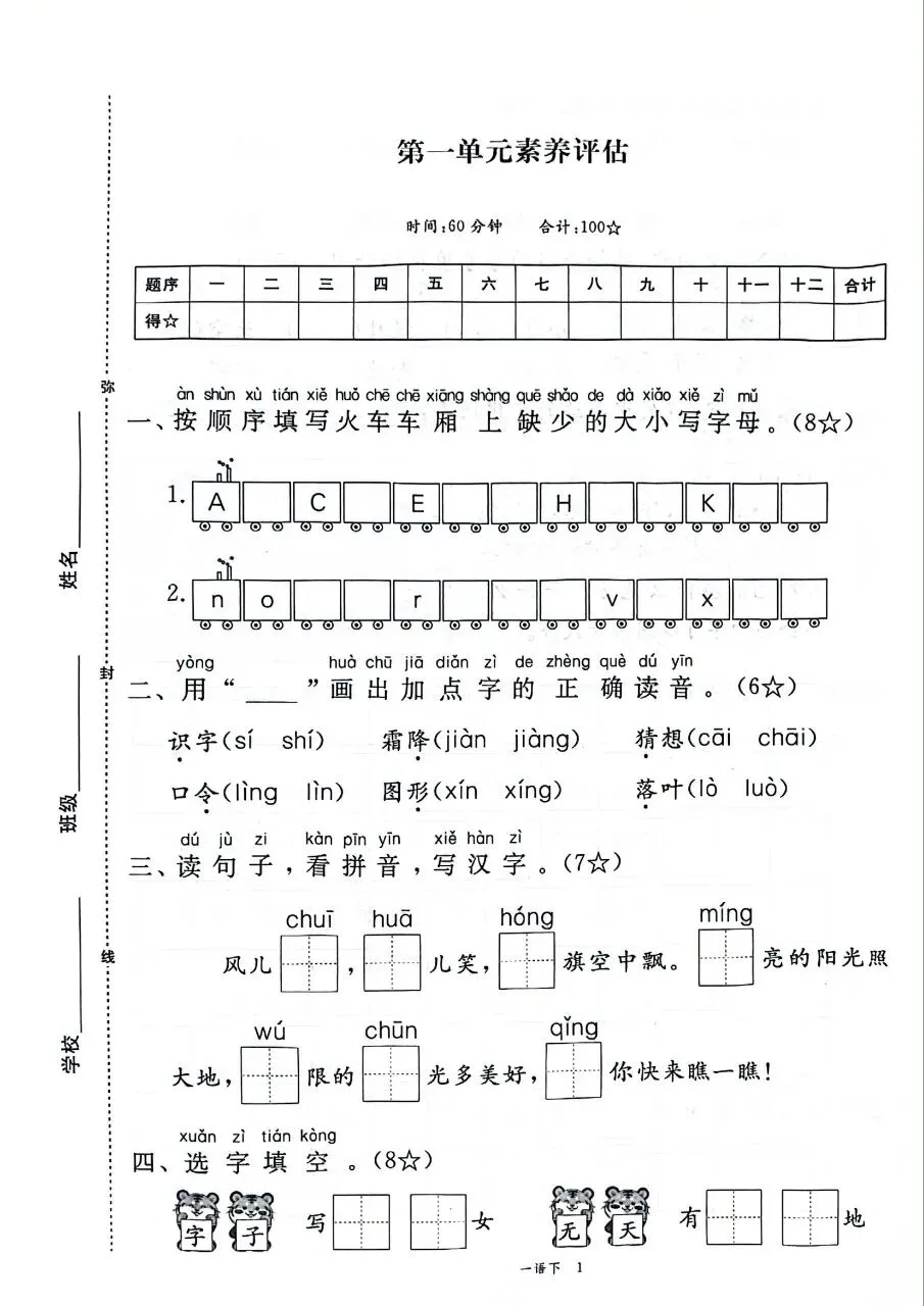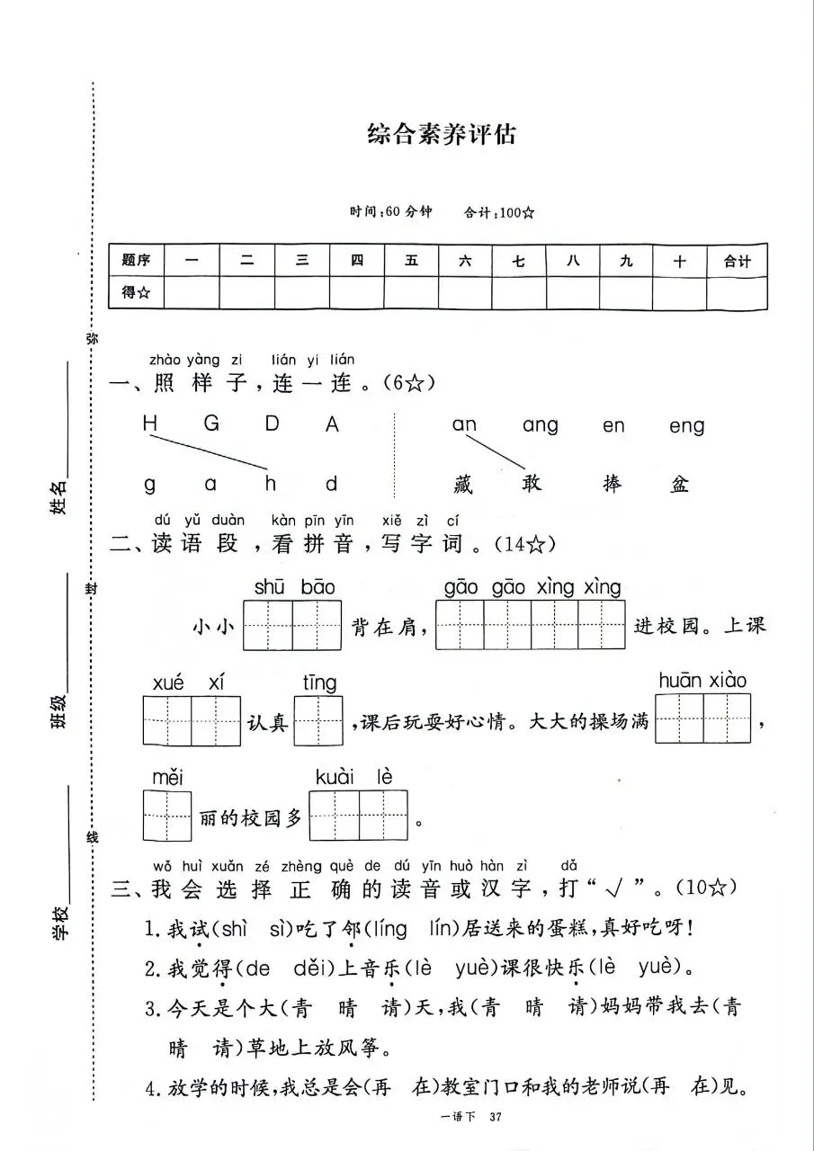 HI,今天分享的学习资料是:2026年春新版一年级下册人教部编版语文《1-8单元测试卷+期中期末综合素养评估卷》(共10套,含答案),高清完整电子版可打印。这套试卷能帮助孩子检测各个阶段知识点掌握情况,查漏补缺、巩固提升,建议家长打印出来让孩子练一练,熟悉题型、助力考取好的成绩吧!🌸欢迎分享到家长群或班级群,帮助更多孩子高效学习吧~