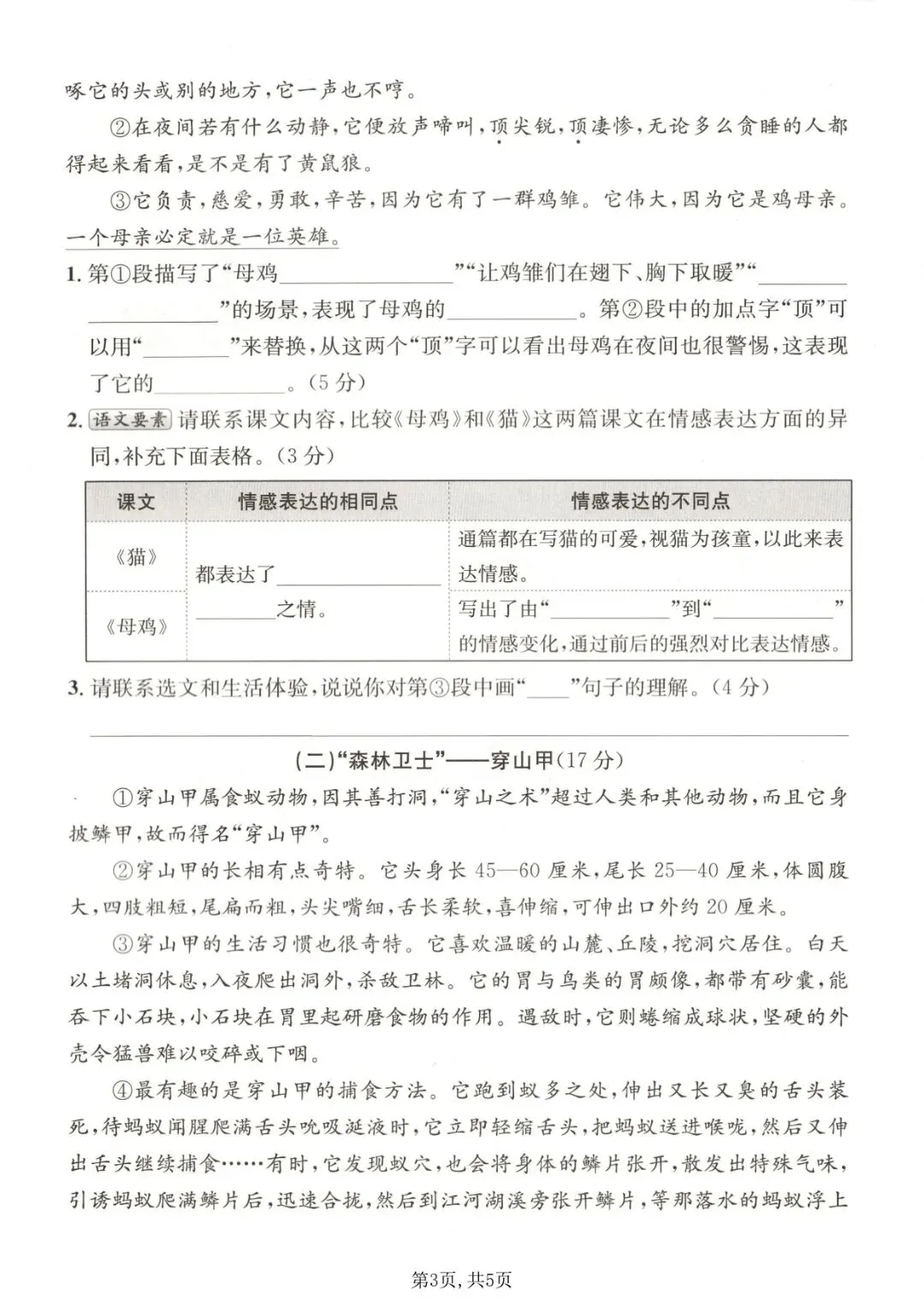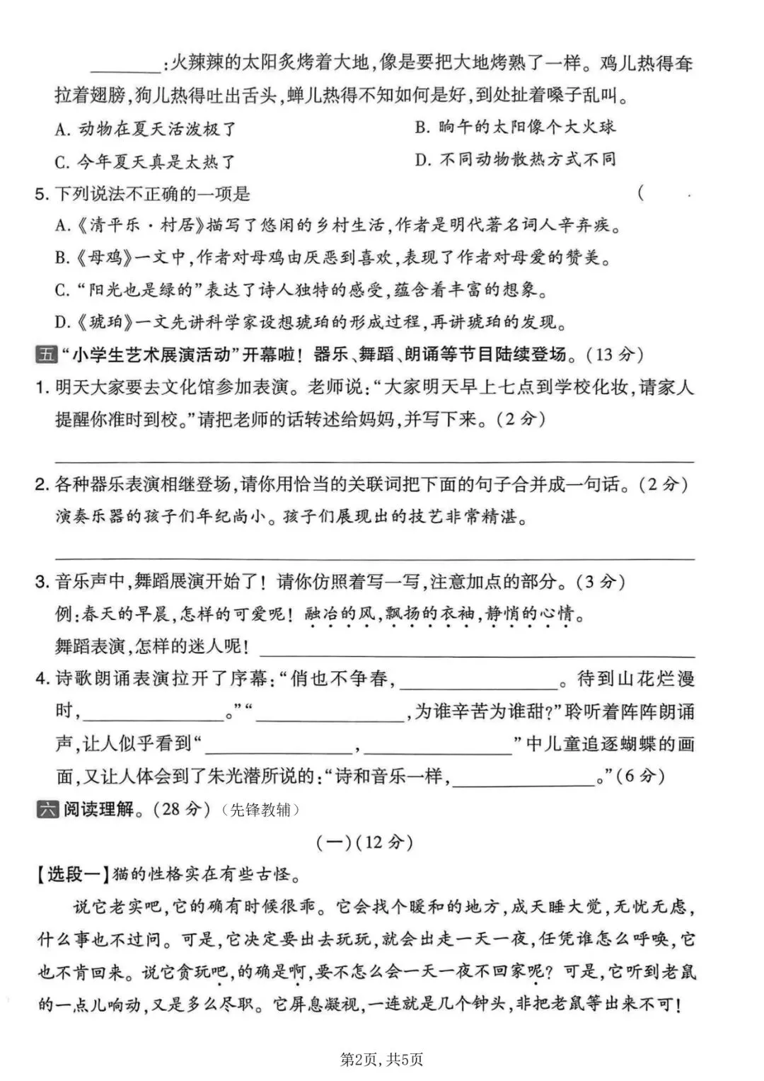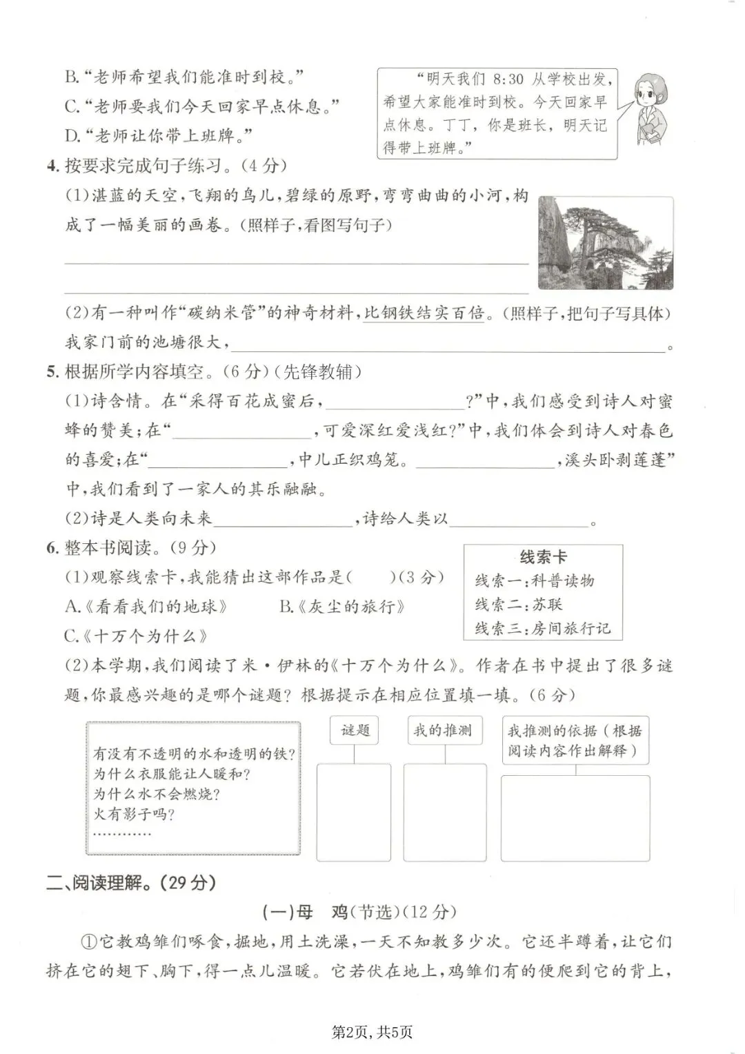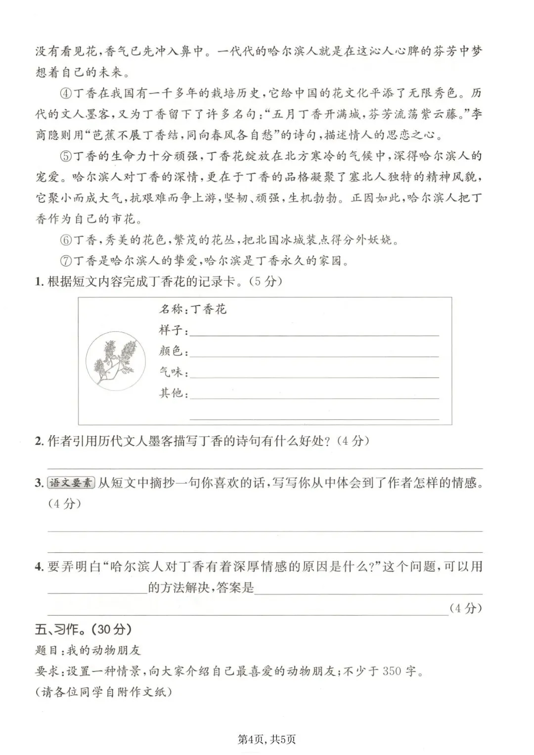 四年级下册语文《期中测试卷》5套,一键免费下载