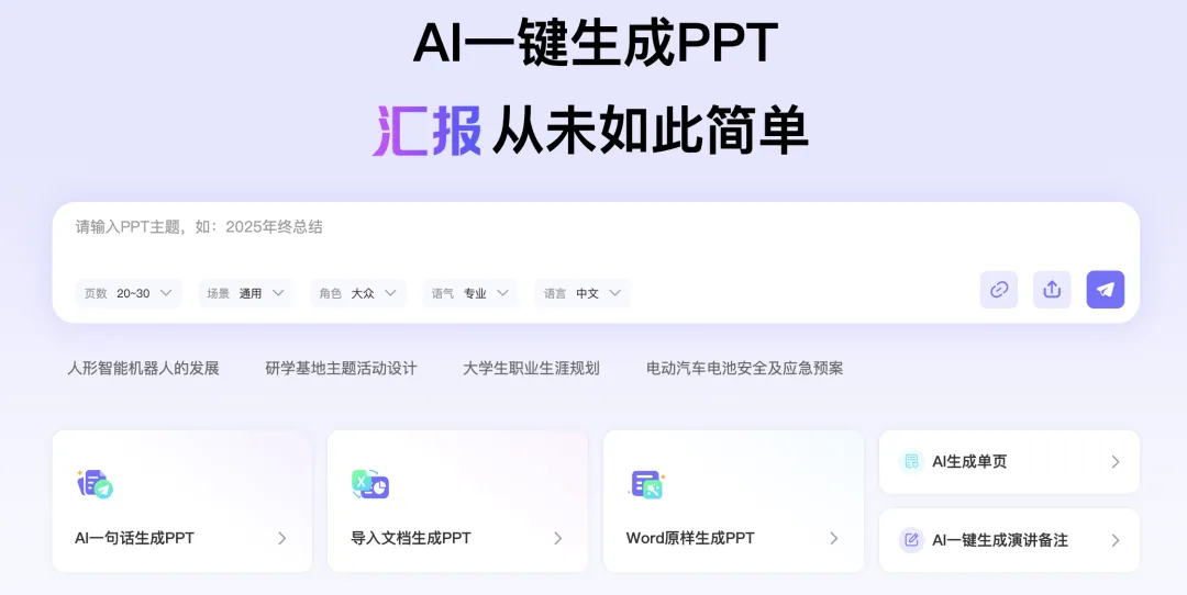 - 演讲备注:点一下“AI生成演讲备注”,每页PPT自动配上解说词,你照着念就行,省去写稿的时间。