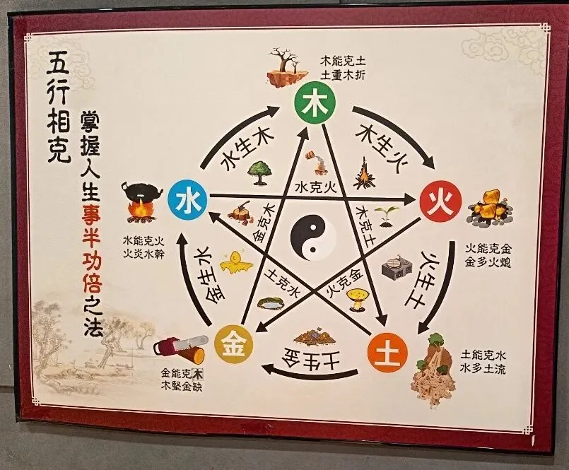 上到二楼,墙上挂着中华生肖文化的讲解,还有五行相生相克图,讲解员也带着我们逐一辨认。
