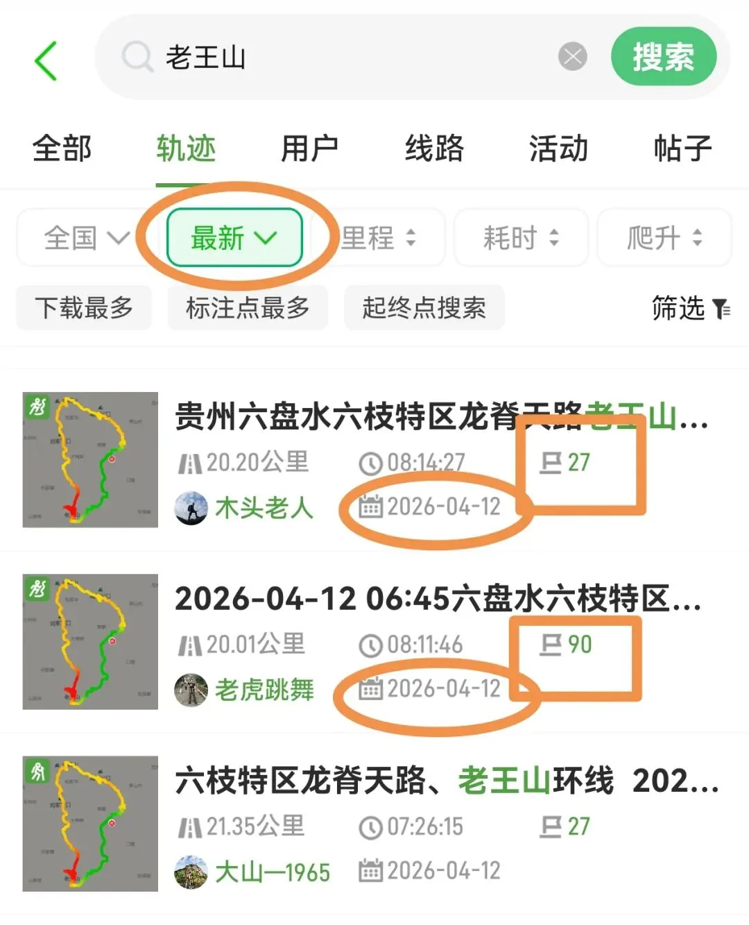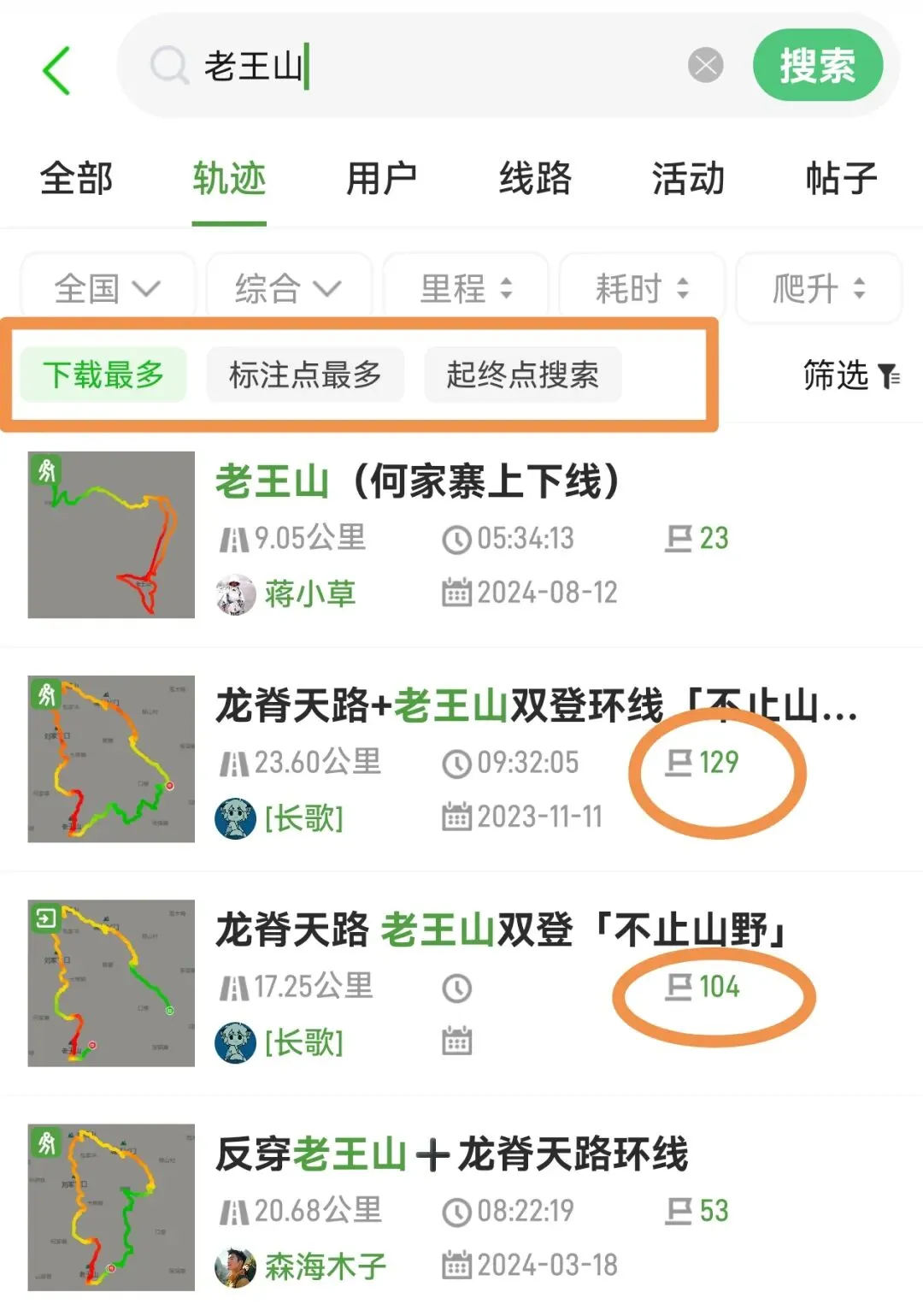 第1步:选对路线——新手避坑关键:打开APP→顶部搜索目的地(如“老王山”)→切换“轨迹”标签,按这4点筛选,避开90%风险: