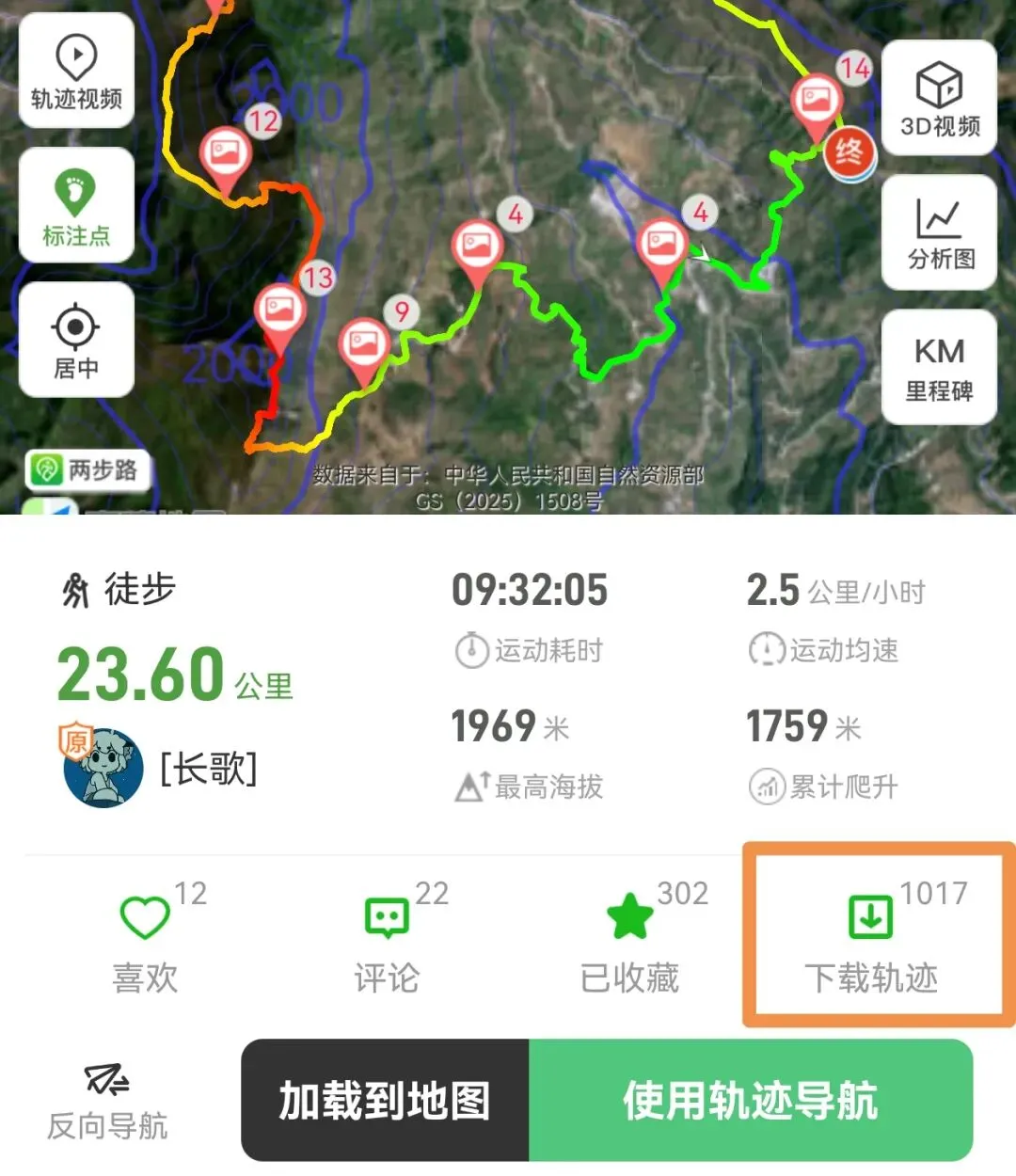 轨迹自带海拔、爬升数据,能提前预判陡坡、险段,避开未开发野路的陷阱,减少体力浪费和受伤概率 。