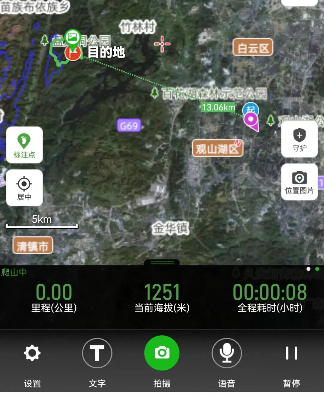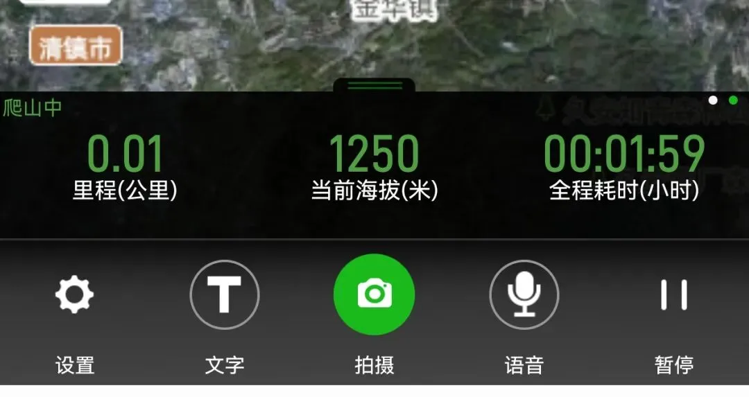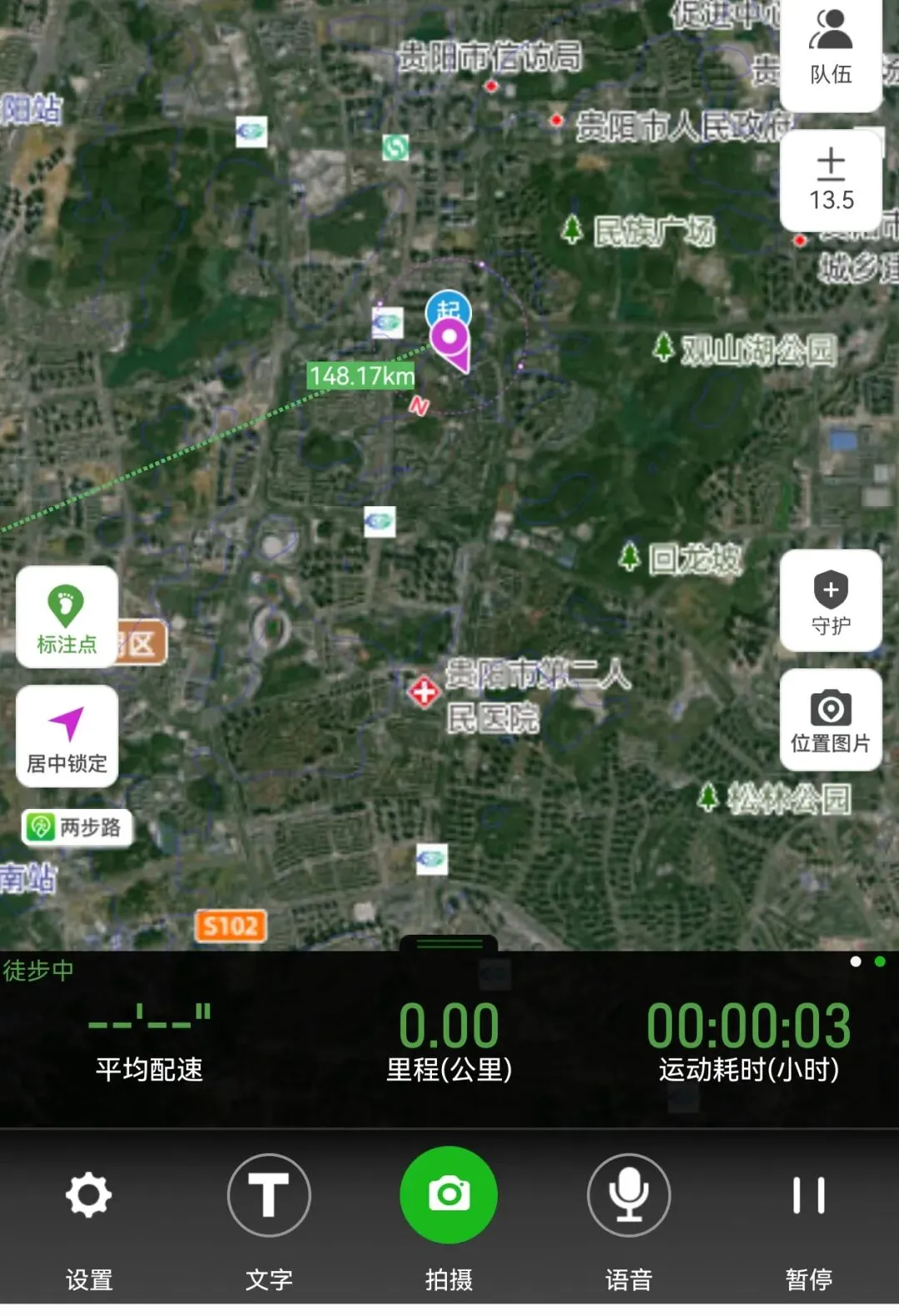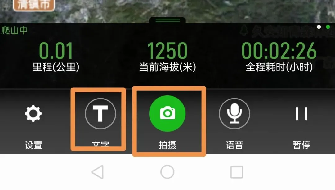 – 底部记录:可选择“拍摄”、“文字”、“语音”等实时记录你在徒步过程中路况。