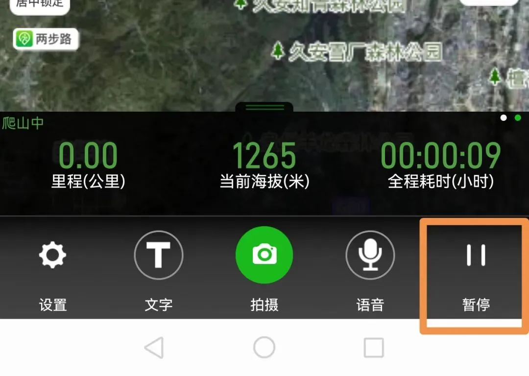 2. 数据记录:点“开始爬山”自动记录轨迹,休息时点“暂停”,避免数据漂移 ;