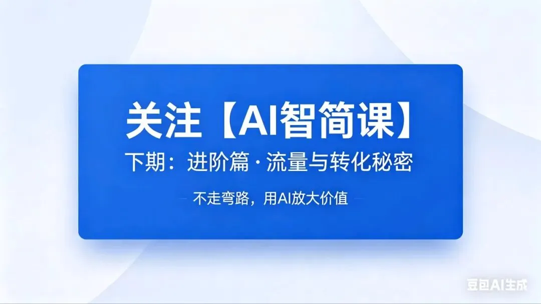 下一篇,我们将讲《进阶篇:如何让你的AI作品卖得更好?流量与转化的秘密》。关注【AI智简课】,我们下期见。