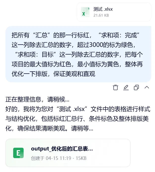 可能有朋友会觉得调个格式没难度,不非得要AI,但如果你出差正在路上,或者手边没电脑的时候,老板突然丢过来一个表格让你改,这时候千问的价值就体现出来了,只要一部手机和一句大白话指令就能改好表格,直击打工人痛点。