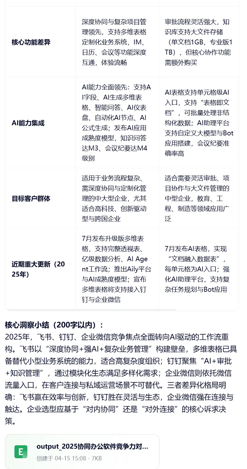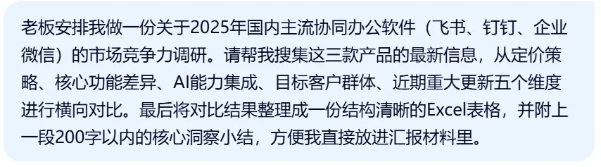 比如说做一个市面上主流办公软件的调研,你可以直接对千问说: