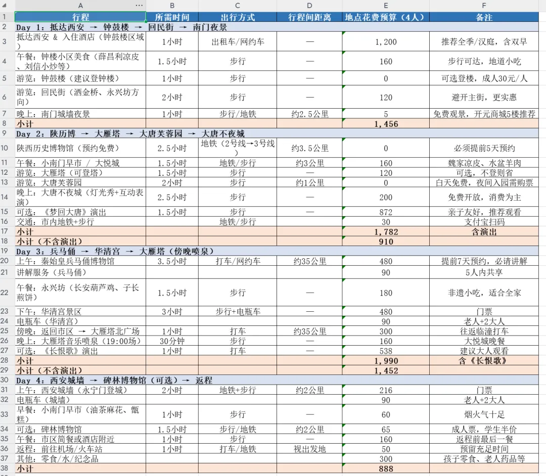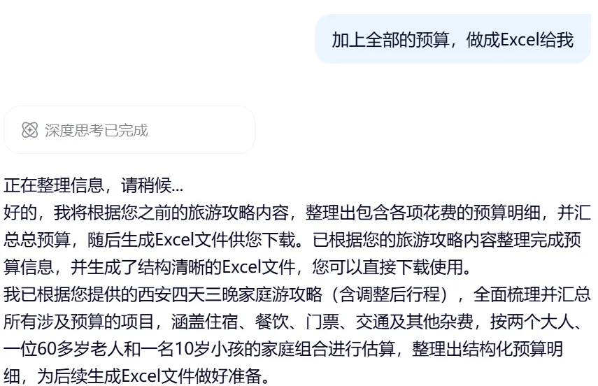 最终做出满意的攻略,只需要对千问说:做成Excel表给我。