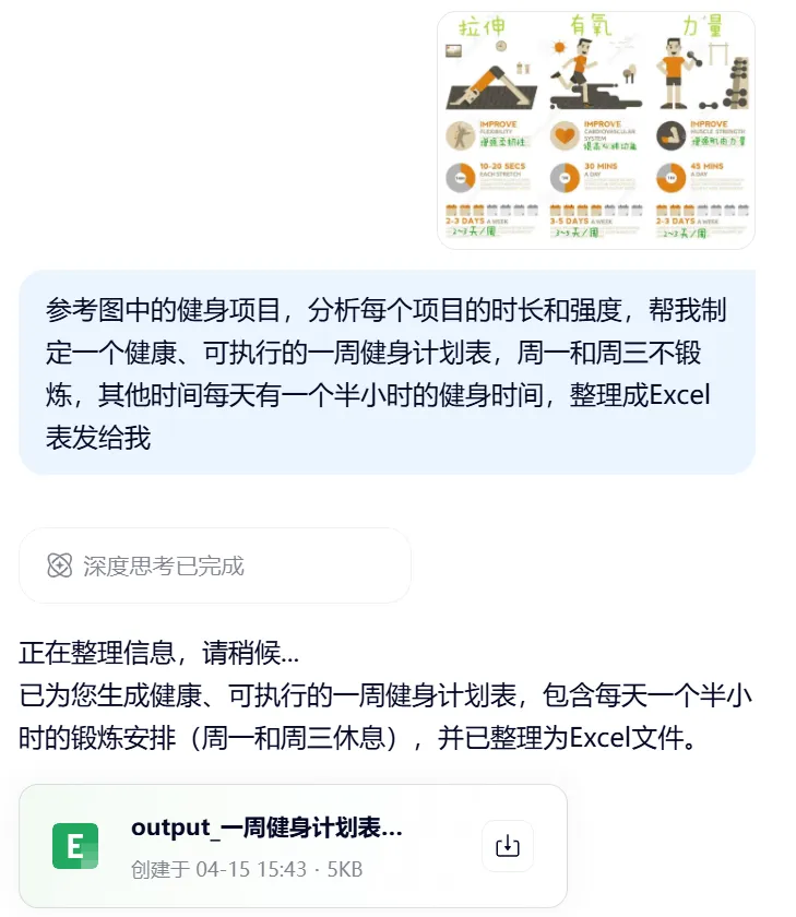 无论是健身人做健身计划,还是宝妈整理孩子的课表,亦或是报销单、体检报告,都可以丢给千问,让它整理成清晰规范的Excel表格,把用户从做表的苦海中解放出来。