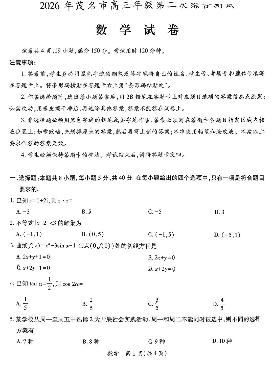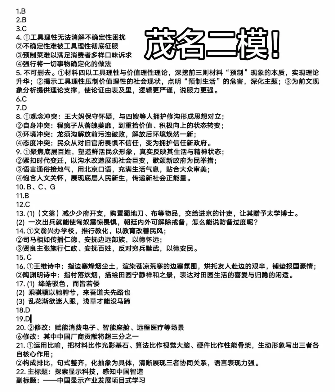 2026茂名二模试题答案