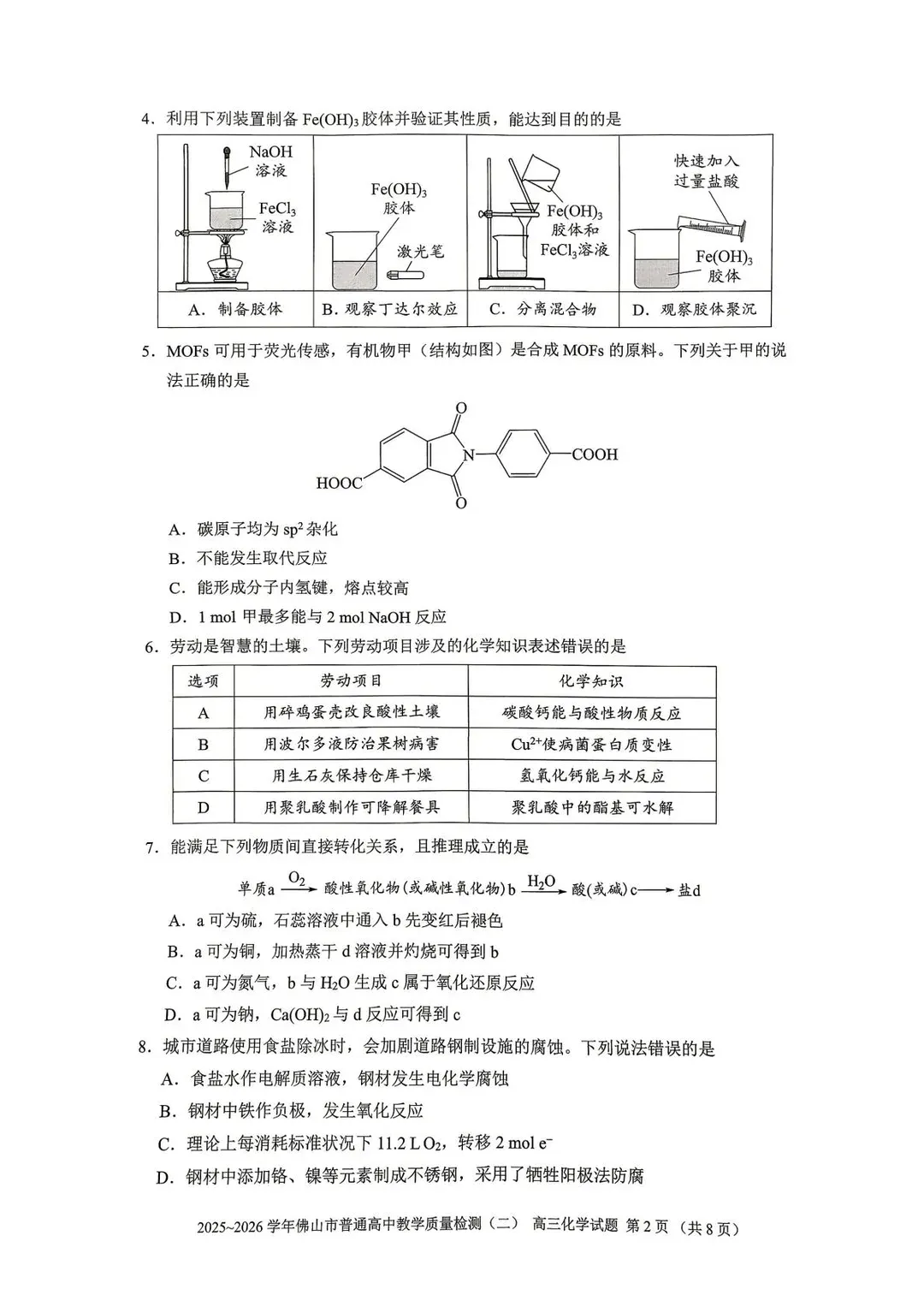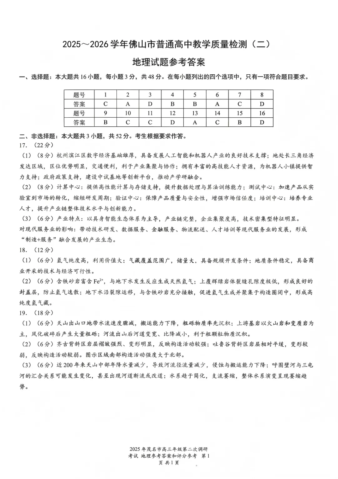 2026佛山二模试题答案