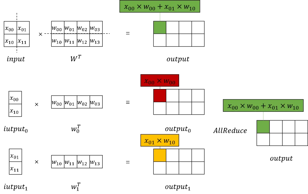 Linear层作为切分主要的网络层,其核心是MatMul矩阵计算,因此矩阵切分计算也是模型并行最重要的一部分。