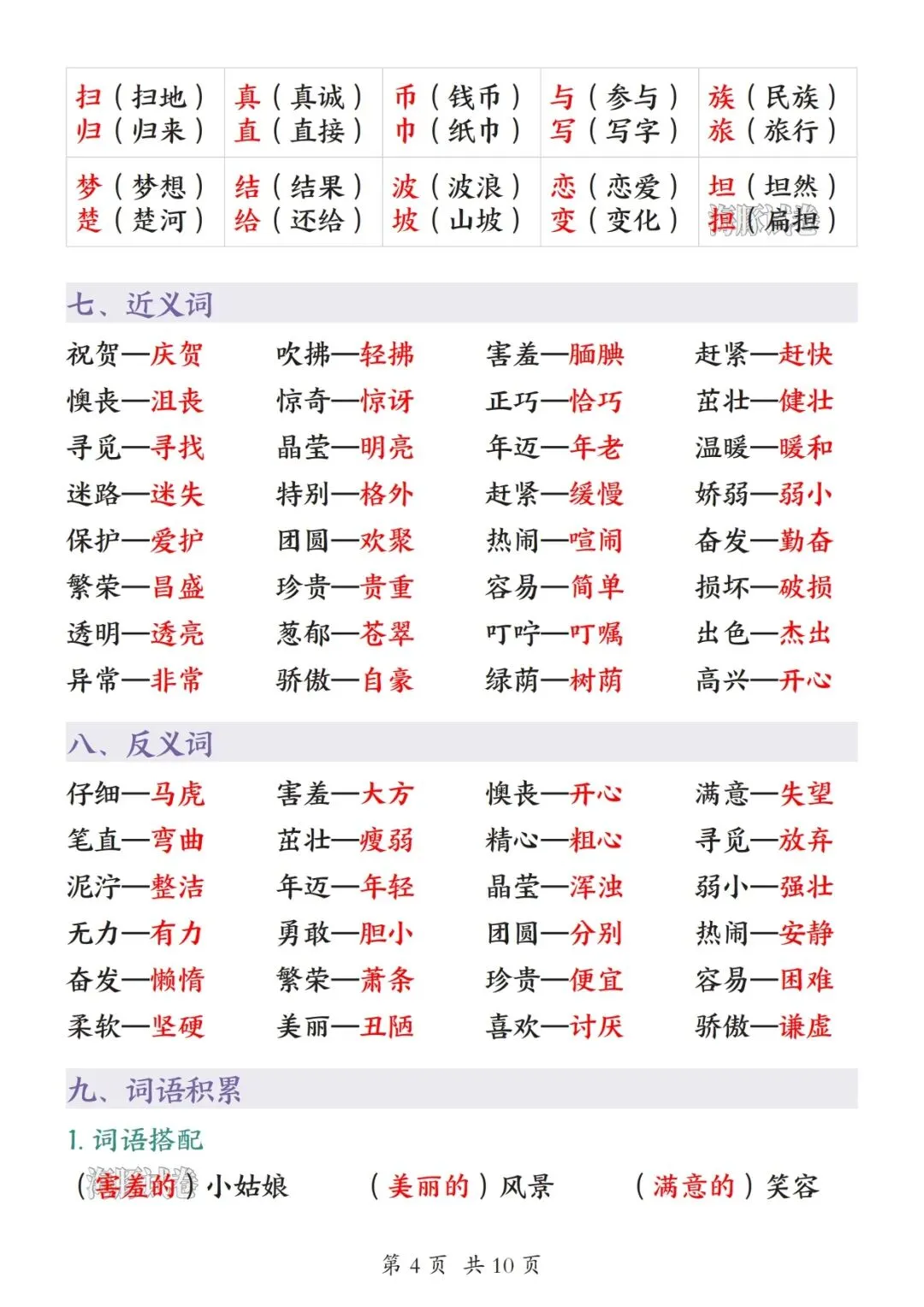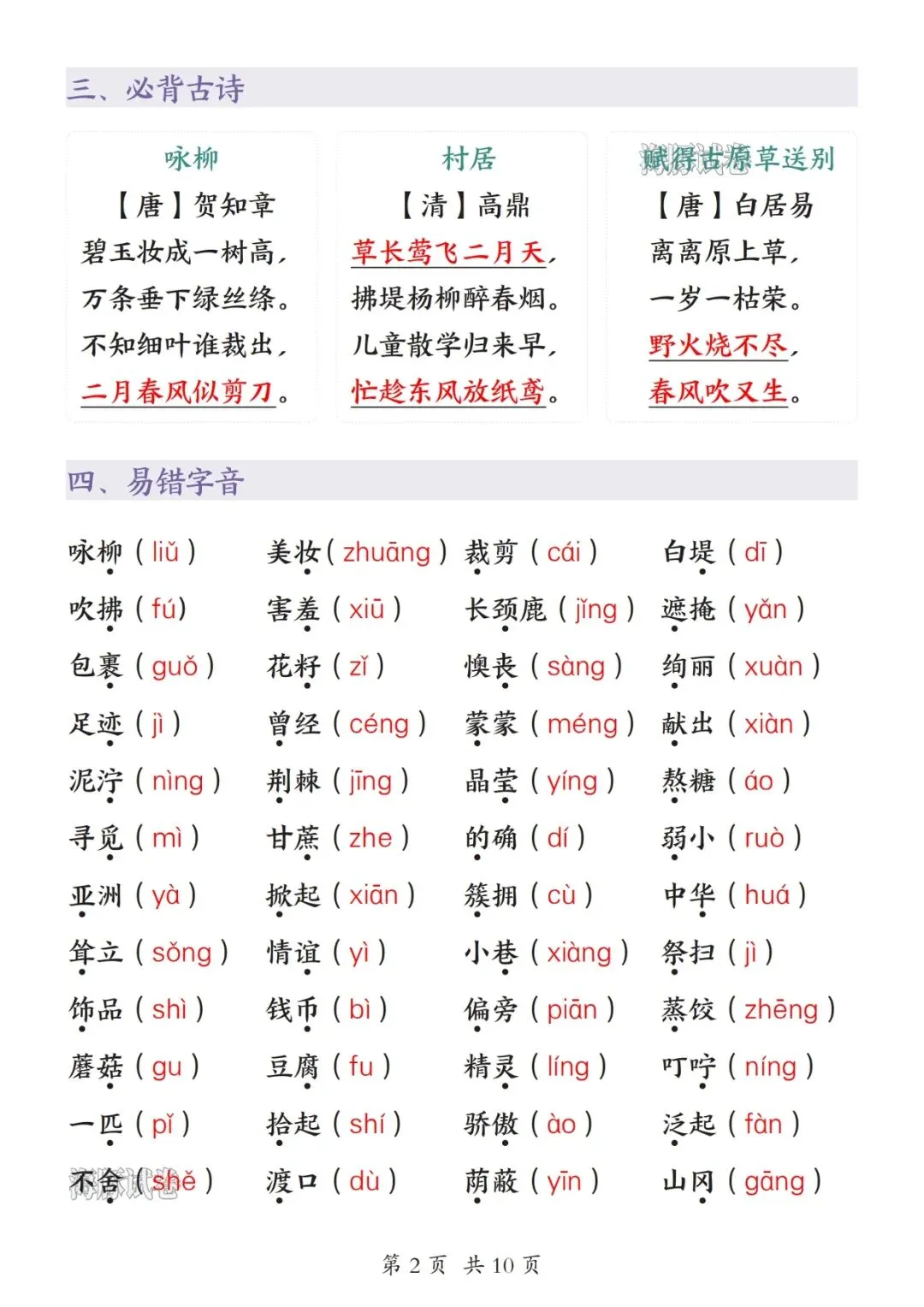 内容重点突出、简洁好记、直击考点,包含:易读错字、易写错字、近义词反义词、多音字、四字词语、必背课文、古诗、日积月累、常考句子训练、期中作文思路。知识点按单元梳理,排版清晰、可直接打印背诵,适合孩子单元复习、期中冲刺、查漏补缺,快速夯实基础、少丢分,轻松应对期中考试。