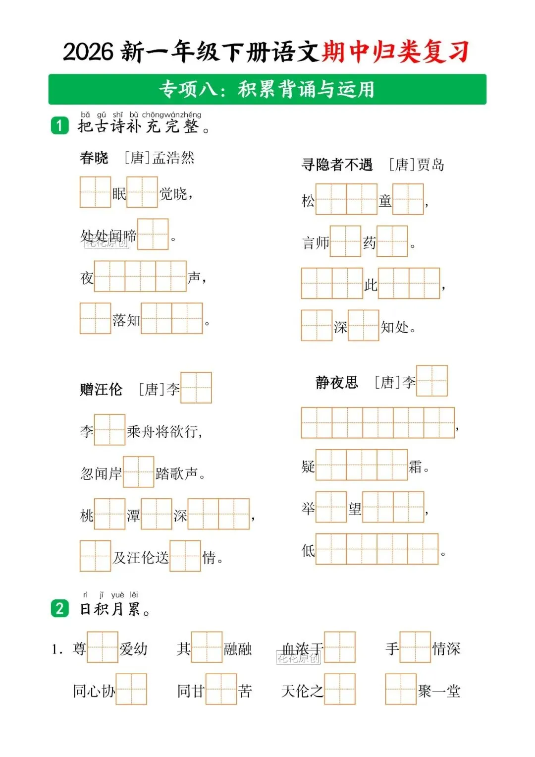 大家好,我是陈佳妈妈,今天分享的是 2026年人教部编版一年级下册语文《期中复习・十大知识点归类复习汇总》共35页含答案 | 完整电子版可打印