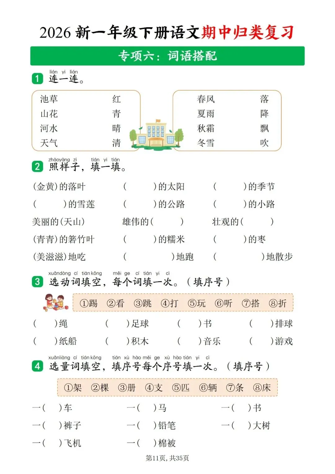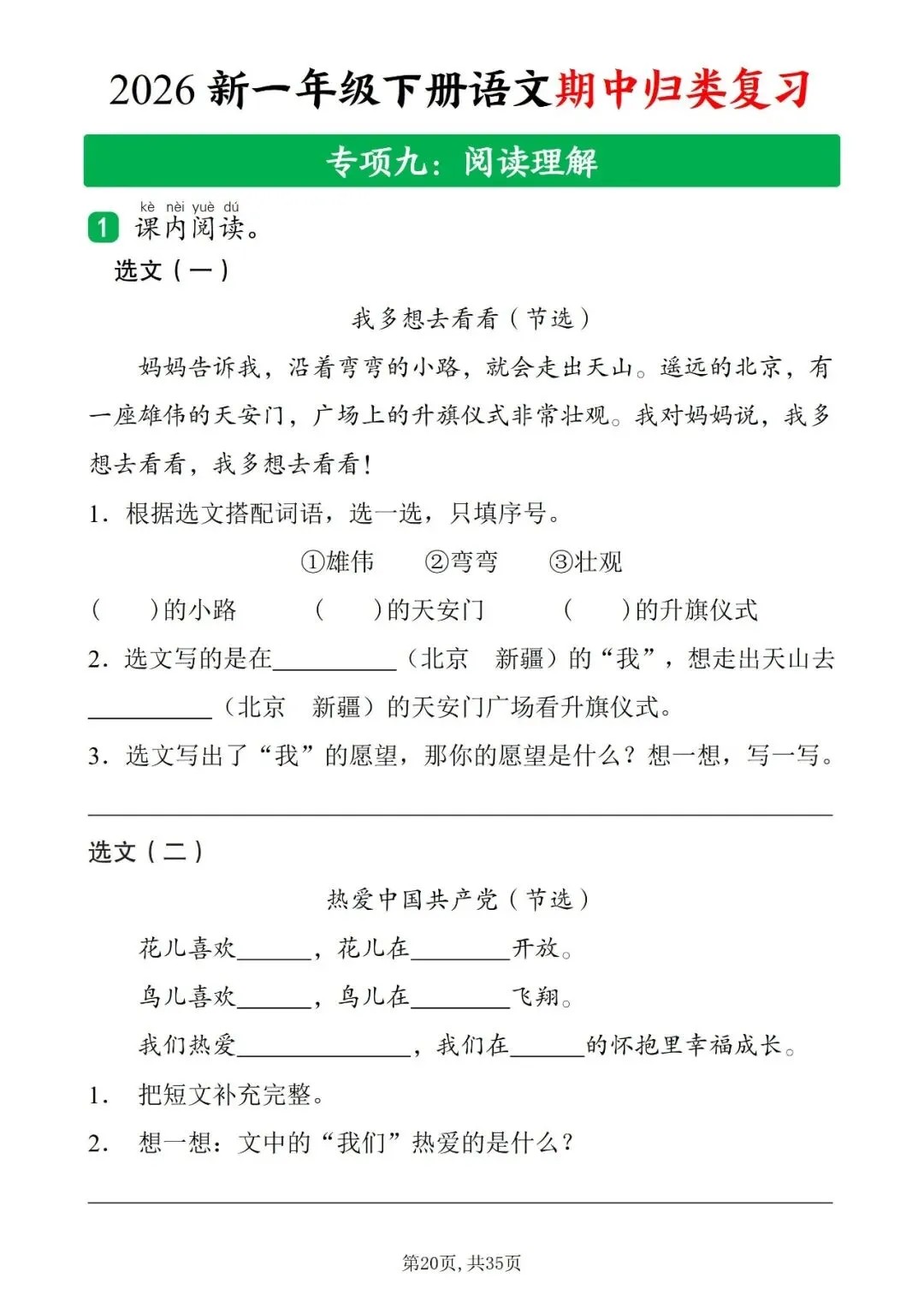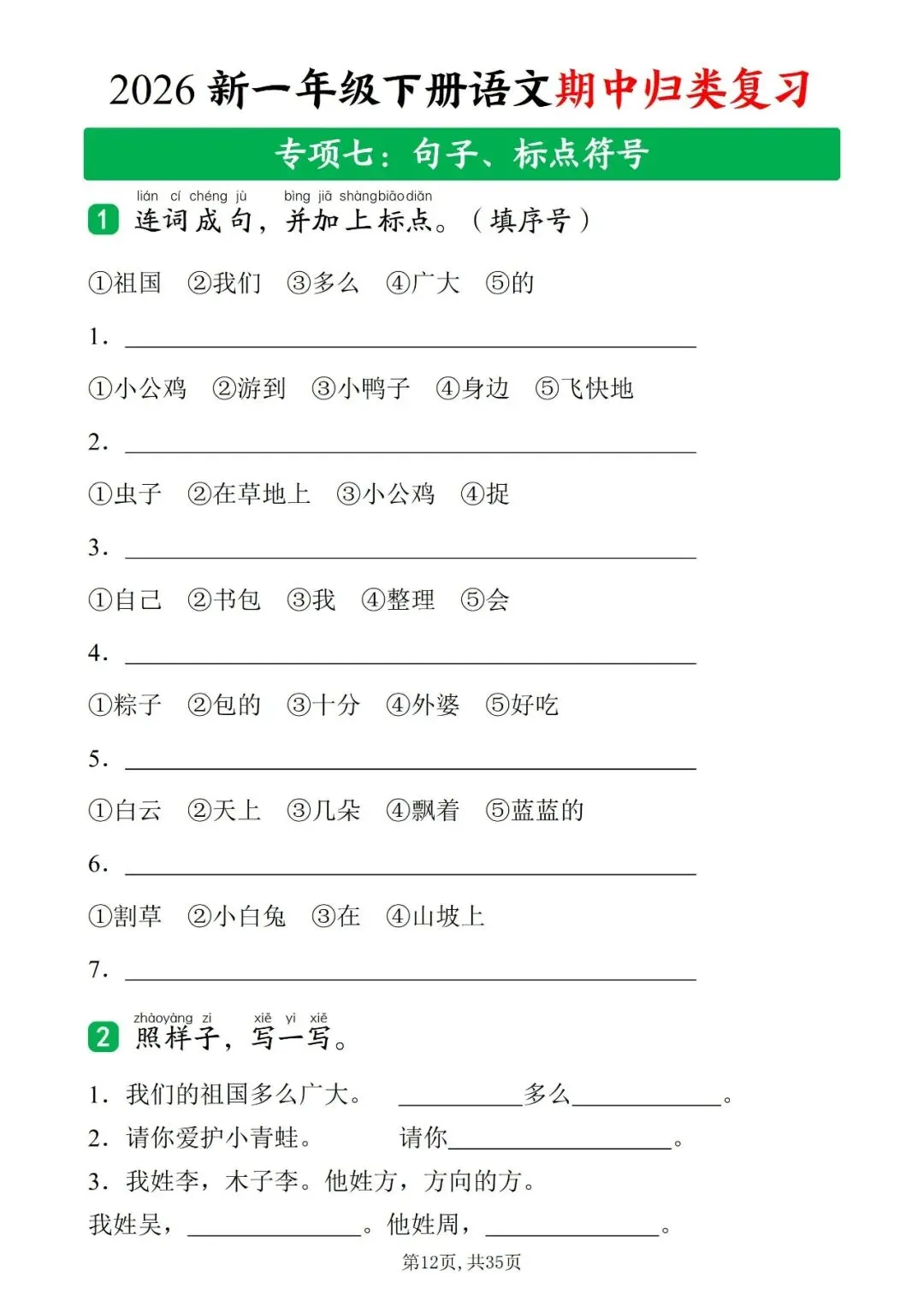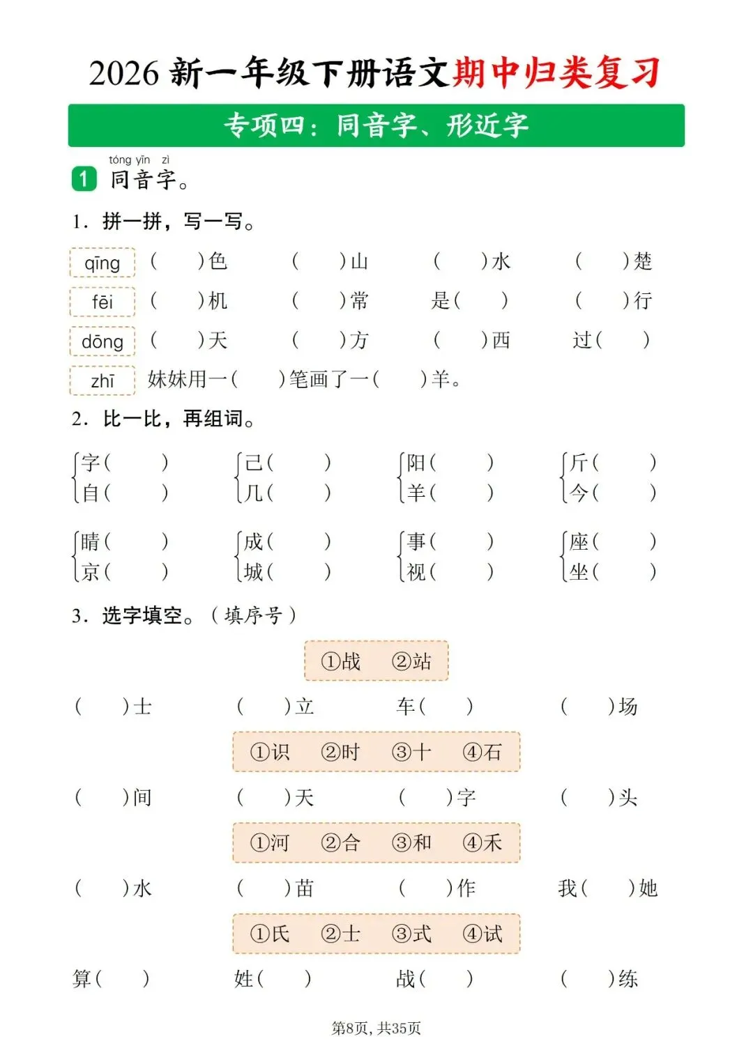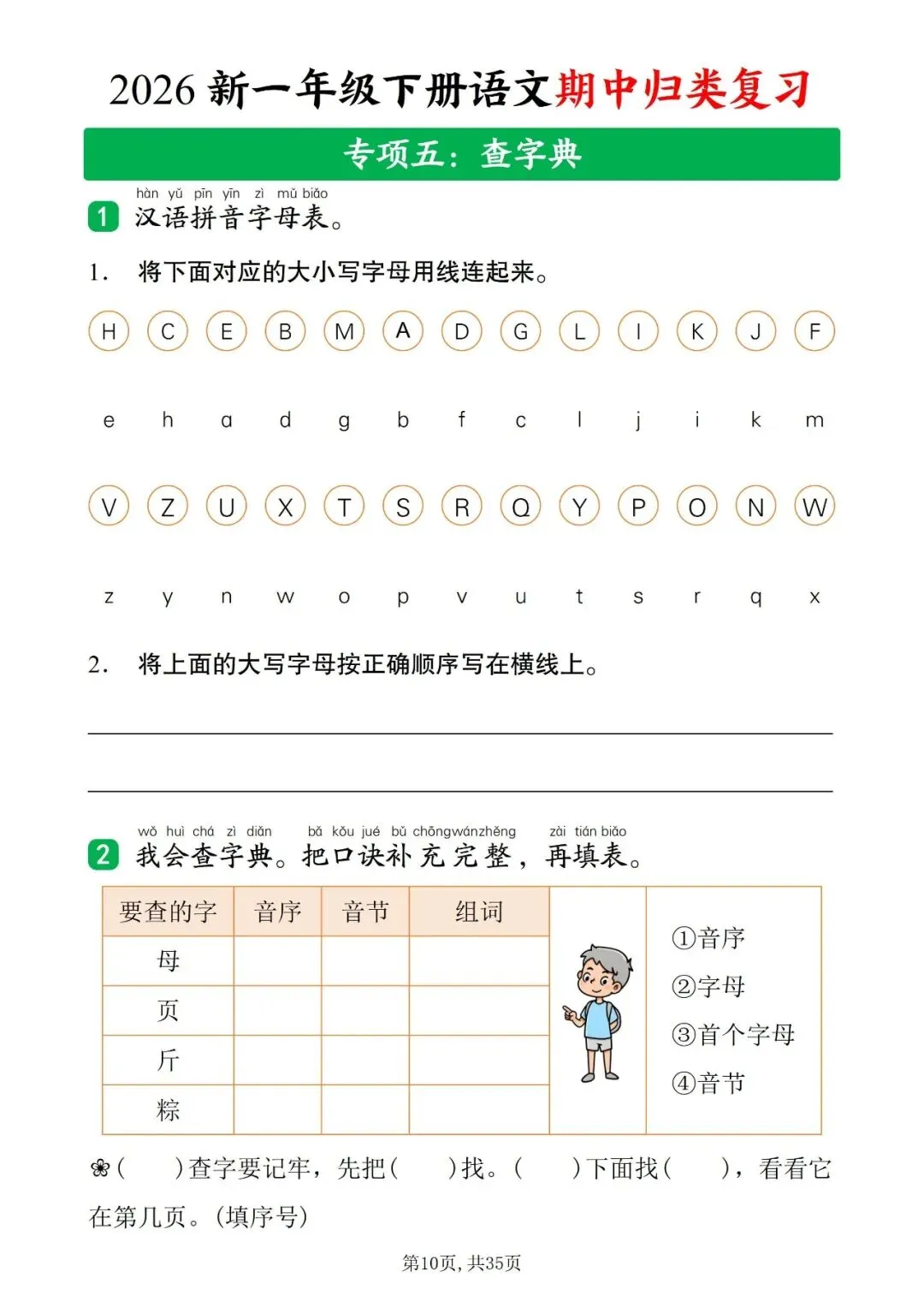2026年人教部编版一年级下册语文《期中复习・十大知识点归类复习汇总》共35页含答案 | 完整可打印