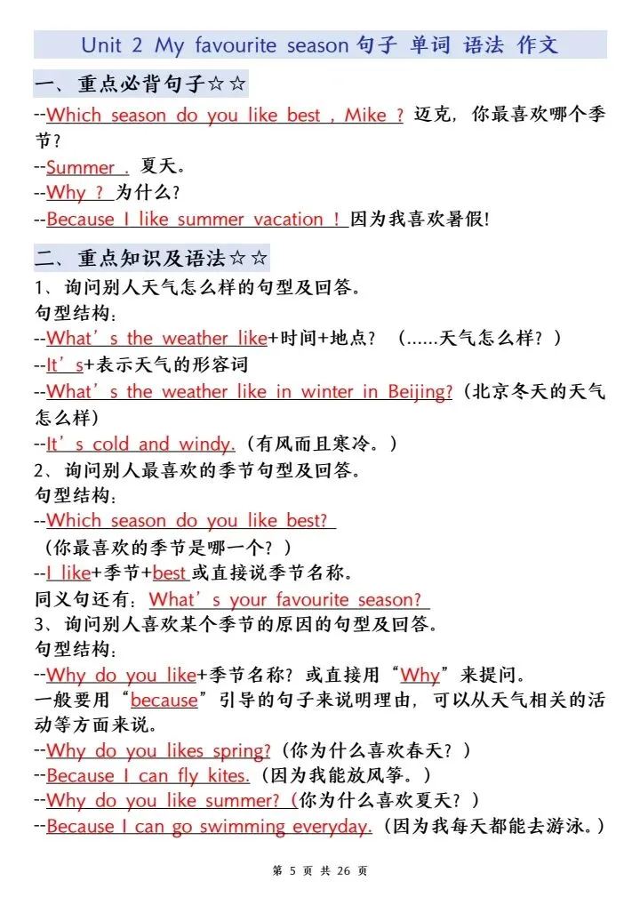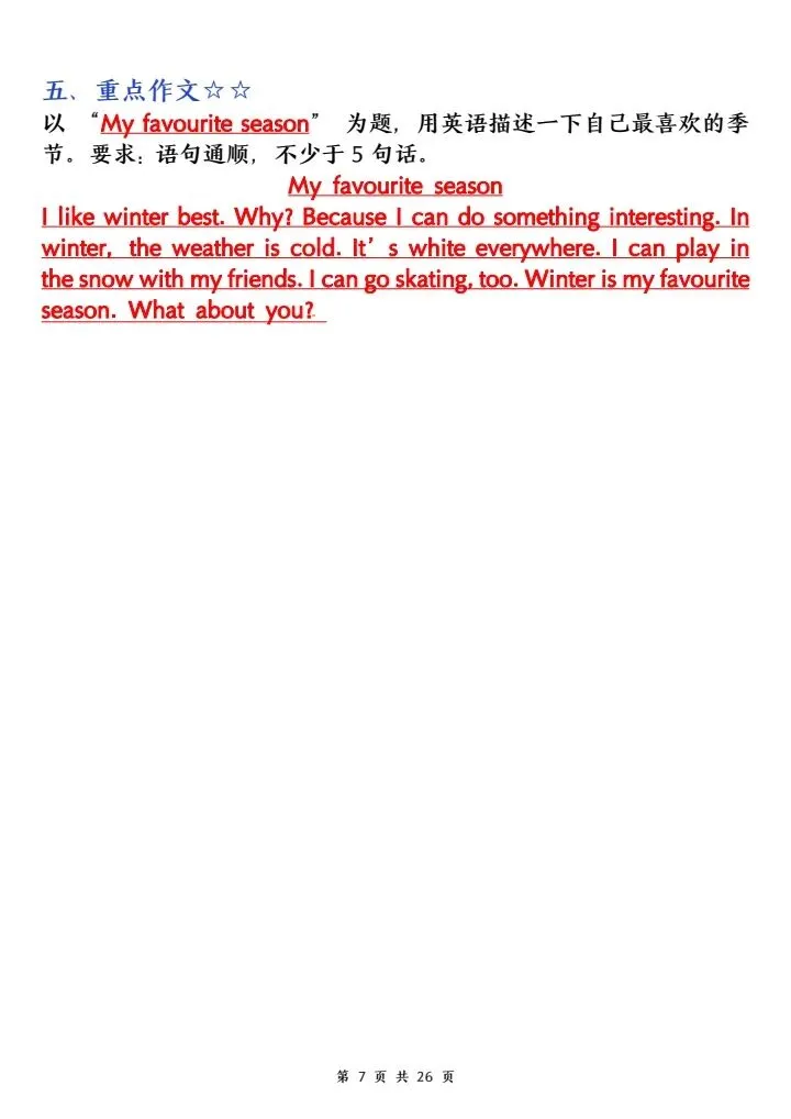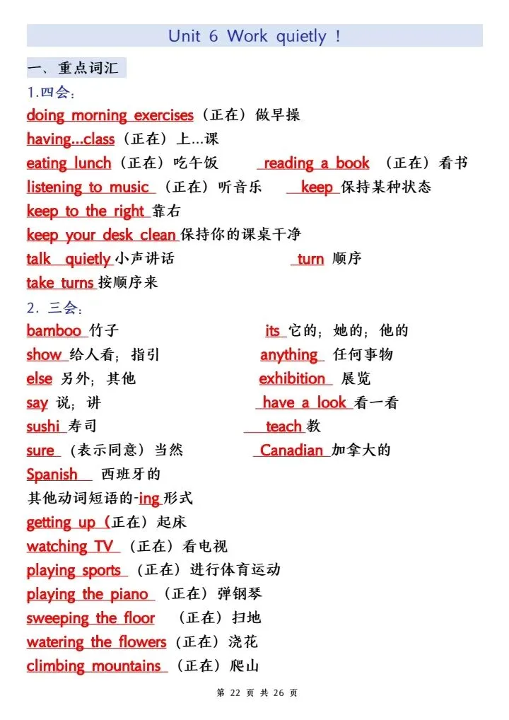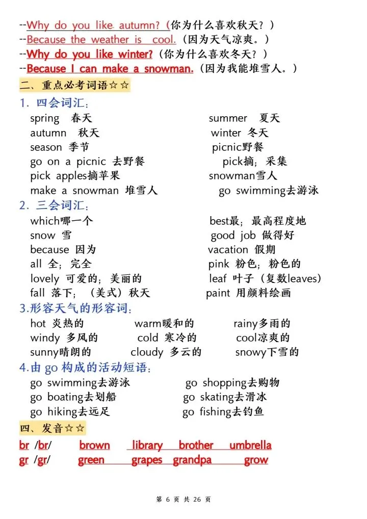 词汇、句型、语法、发音全覆盖,把日常活动、季节、现在进行时等重难点系统梳理,帮孩子吃透课本、夯实基础,预习、复习都能用,轻松攻克英语学习,稳步提升成绩,家长快给孩子打印学习!