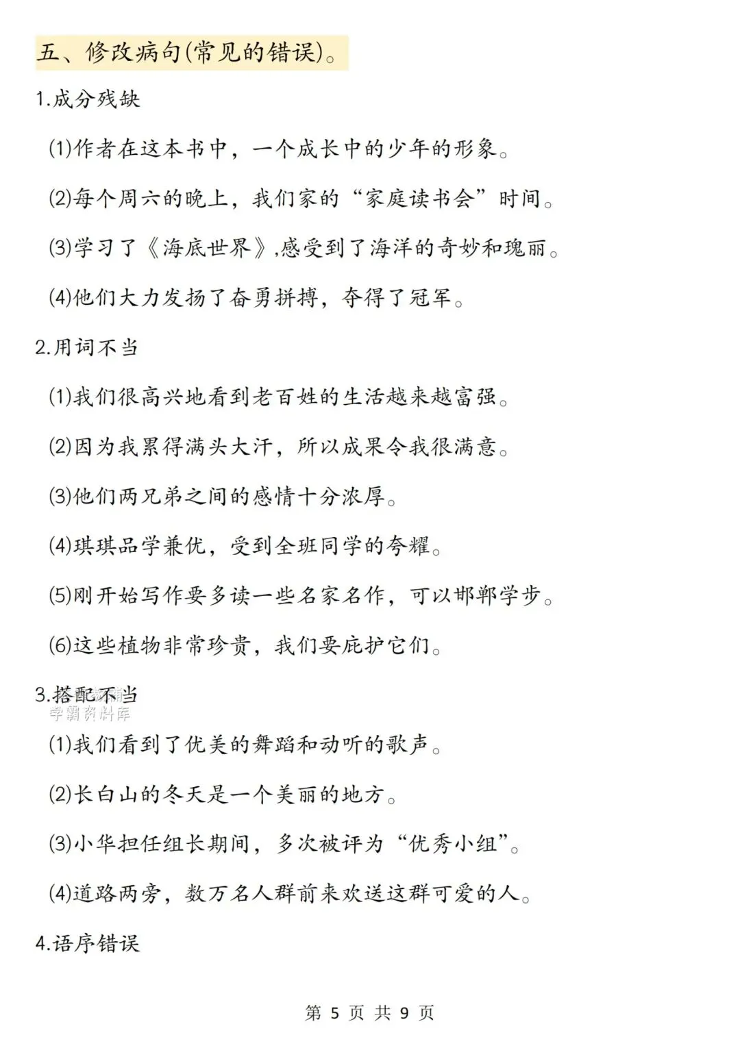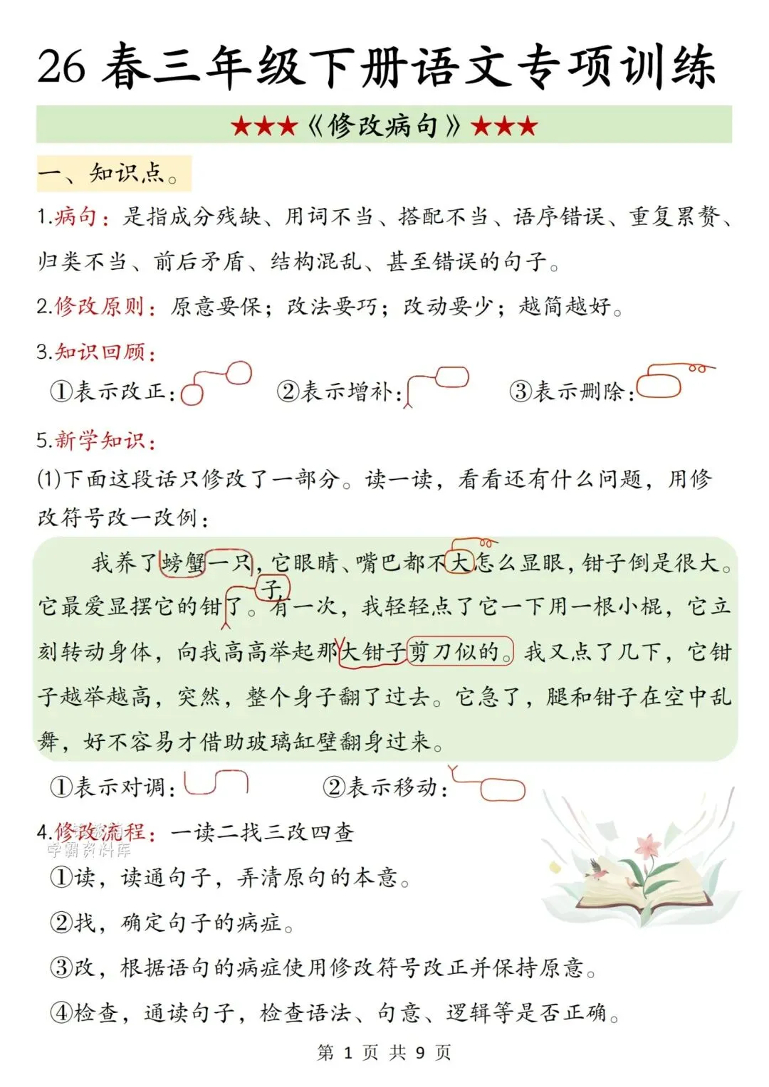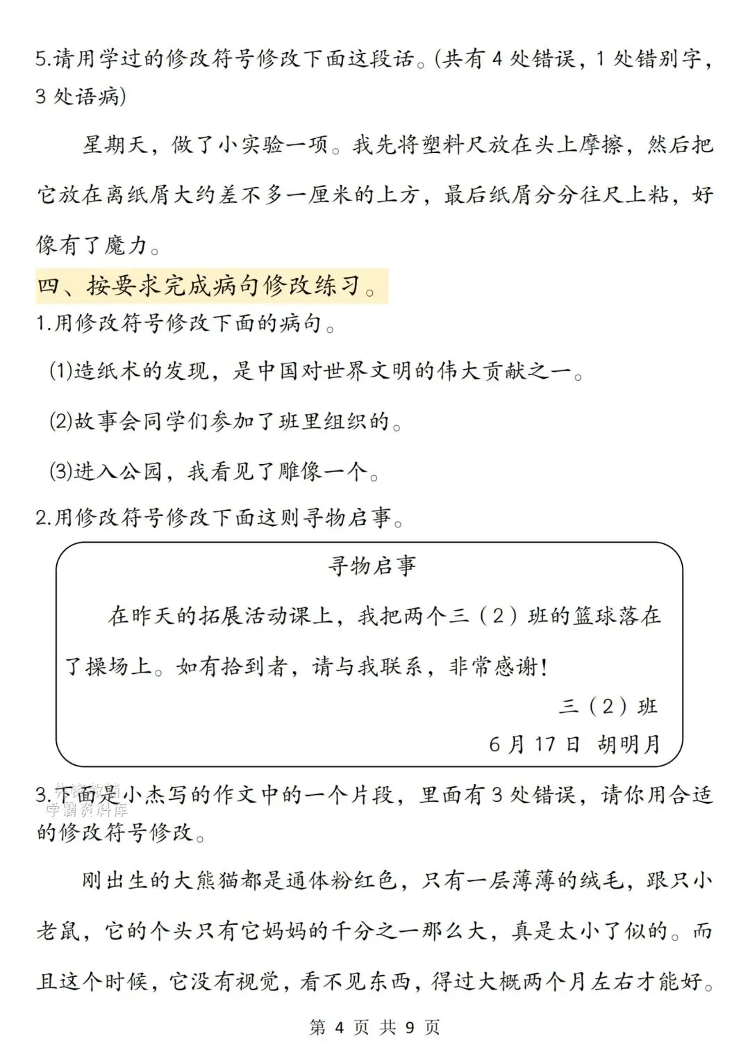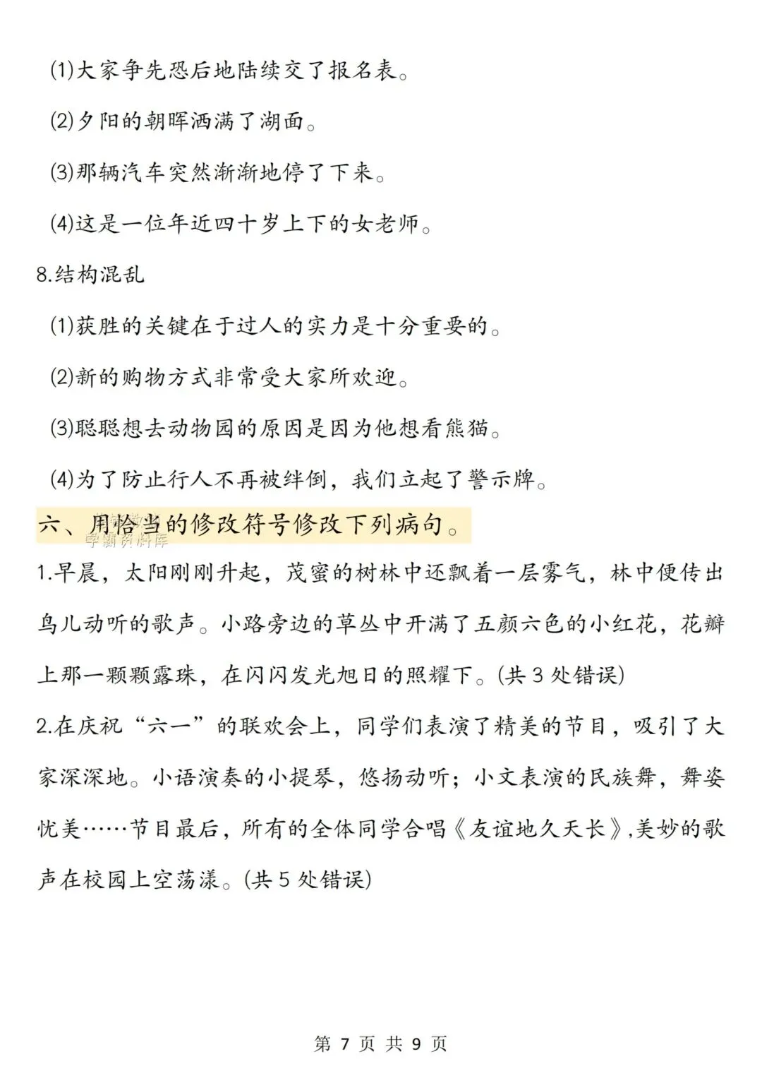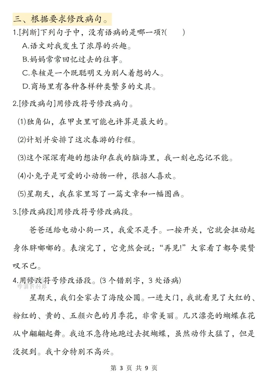 三下语文修改病句专项训练,完整电子版可打印,领取方式见文末!