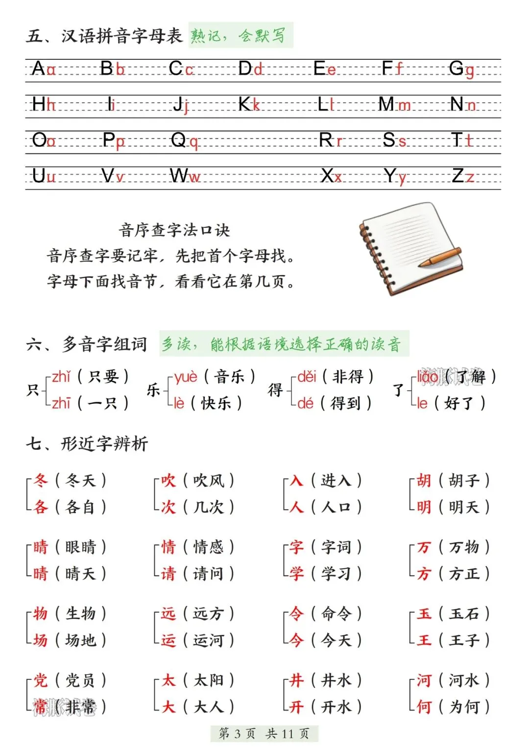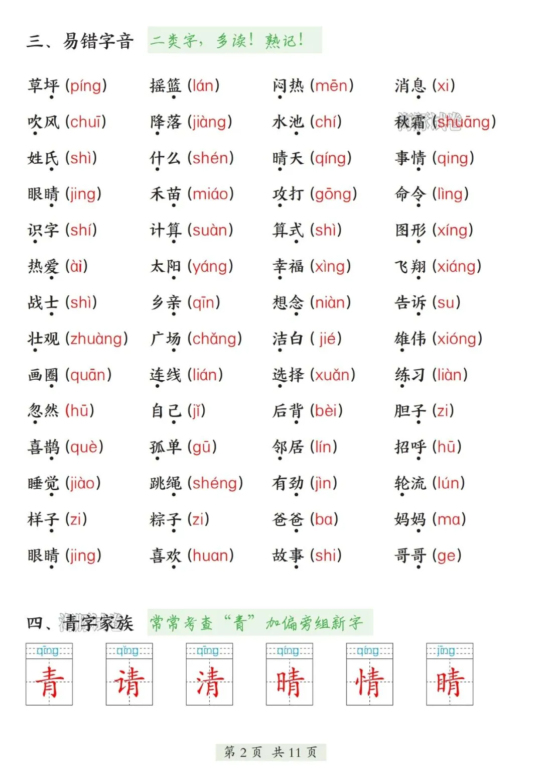 内容覆盖:生字注音、看拼音写词语、形近字、多音字、反义词近义词、量词搭配、词语分类、句子仿写、按课文内容填空、古诗与日积月累、看图写话等一年级期中必考专项。题型基础、重点突出、排版清晰、可直接打印练习,帮孩子夯实基础、规范答题、少丢分,轻松备战期中测试。
