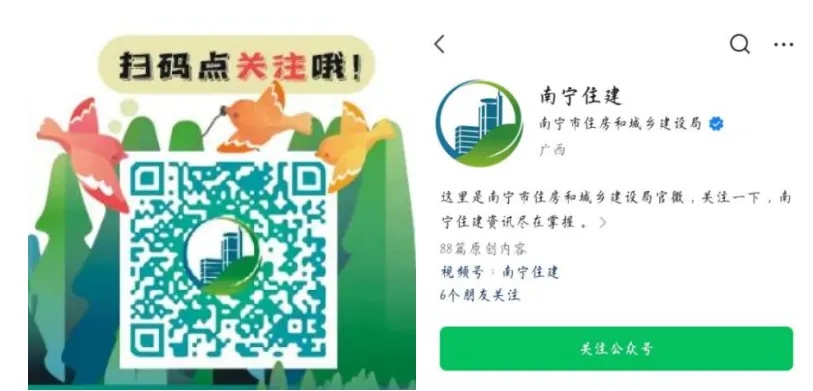一、扫描下方二维码,进入公众号《南宁住建》,点击“关注公众号”;