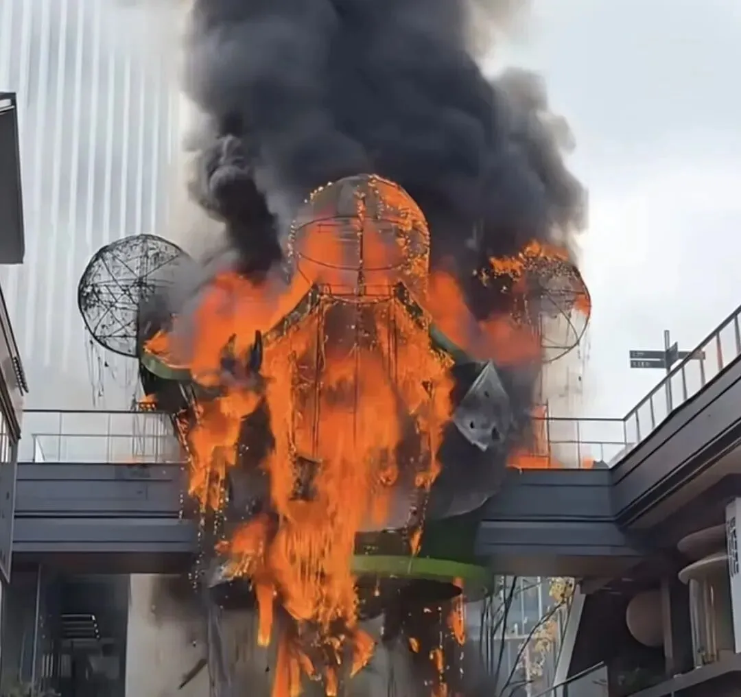 江苏苏州万象天地发布情况说明:今日上午商场一室外布景起火,明火已被扑灭,无人员伤亡;此前有网友称泡泡玛特皇冠状装饰物着火