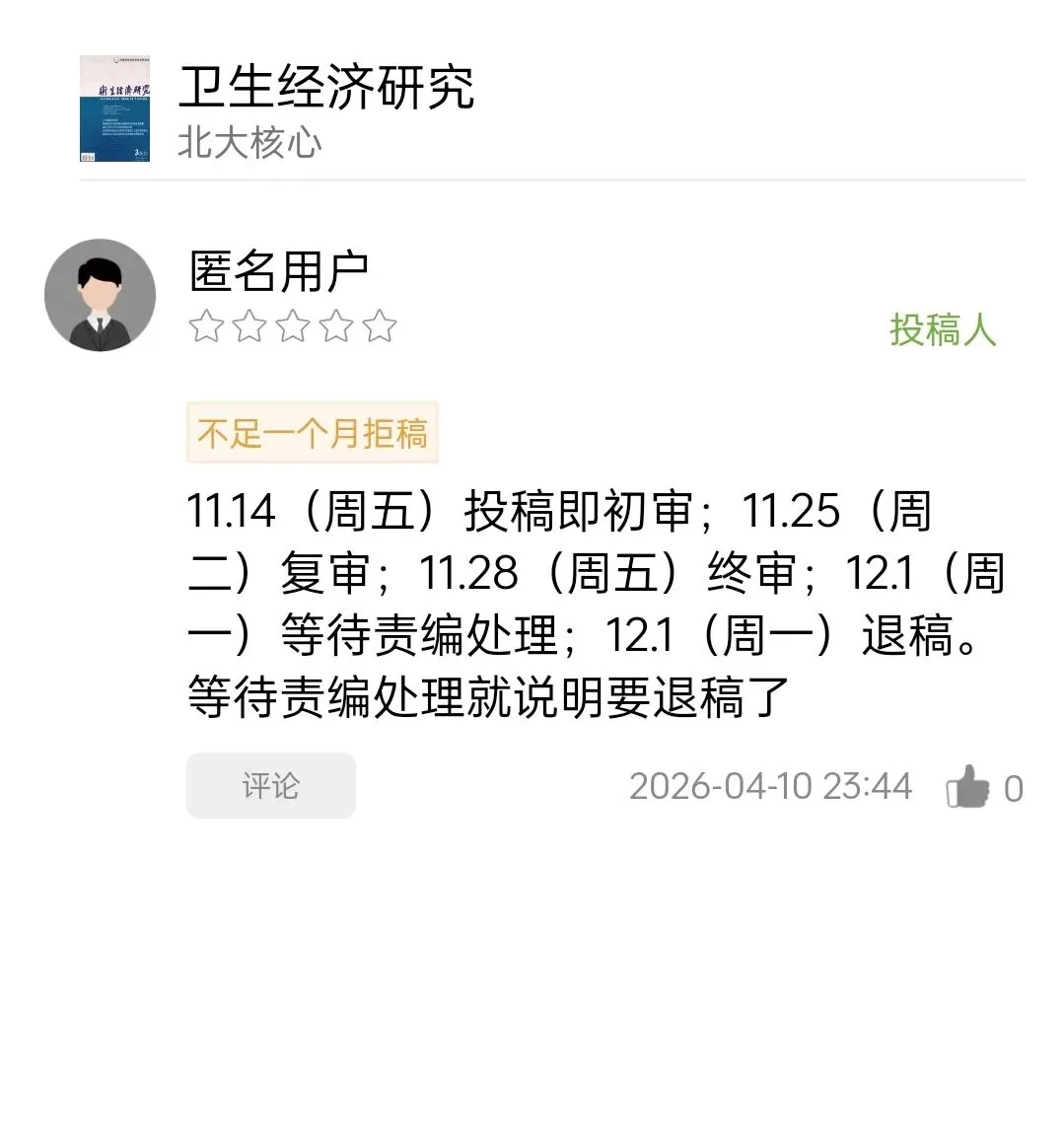 等待责编处理就说明要退稿了