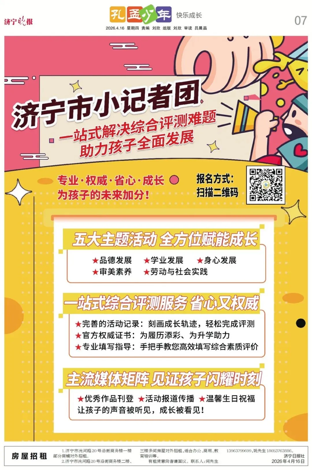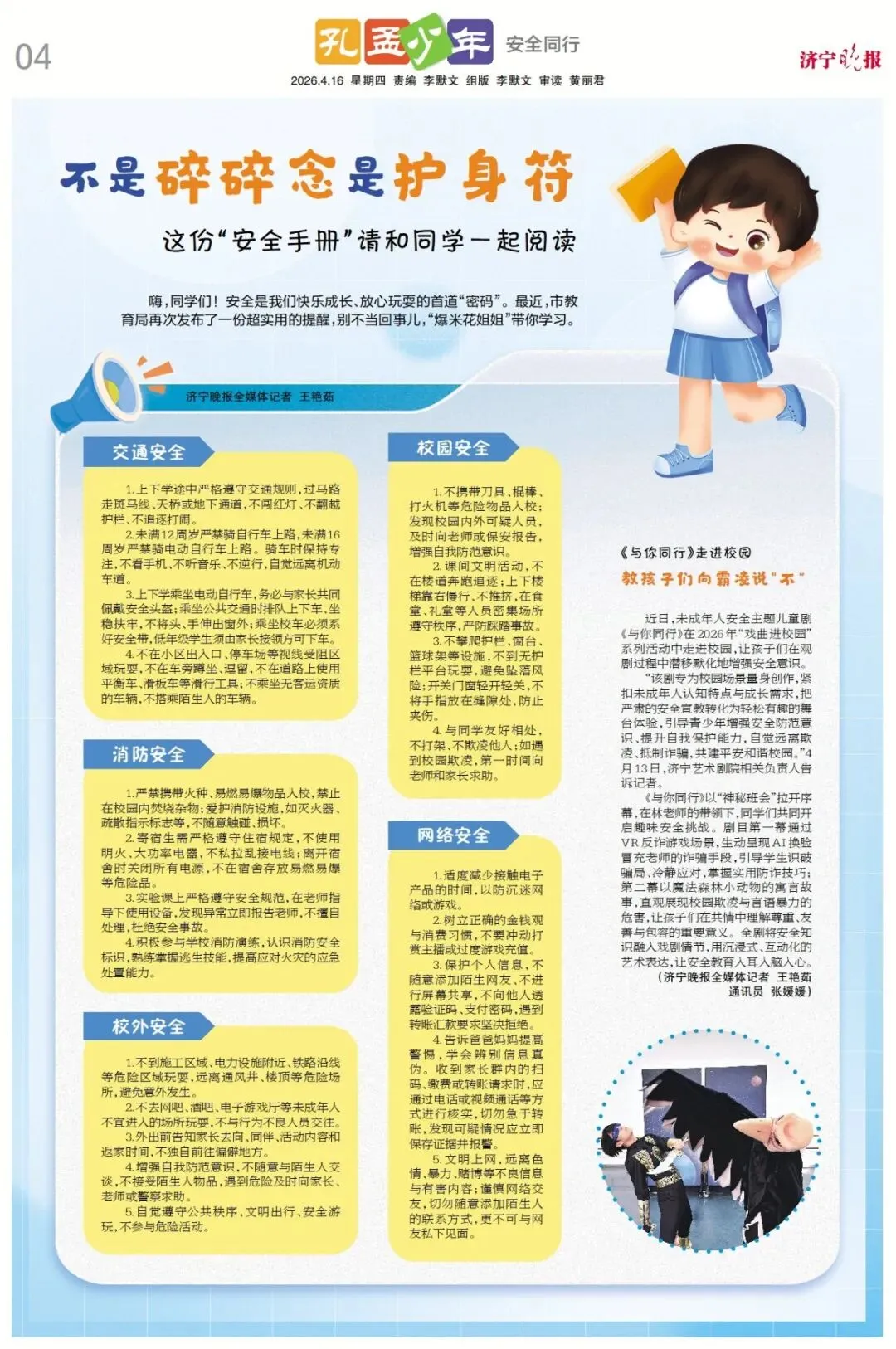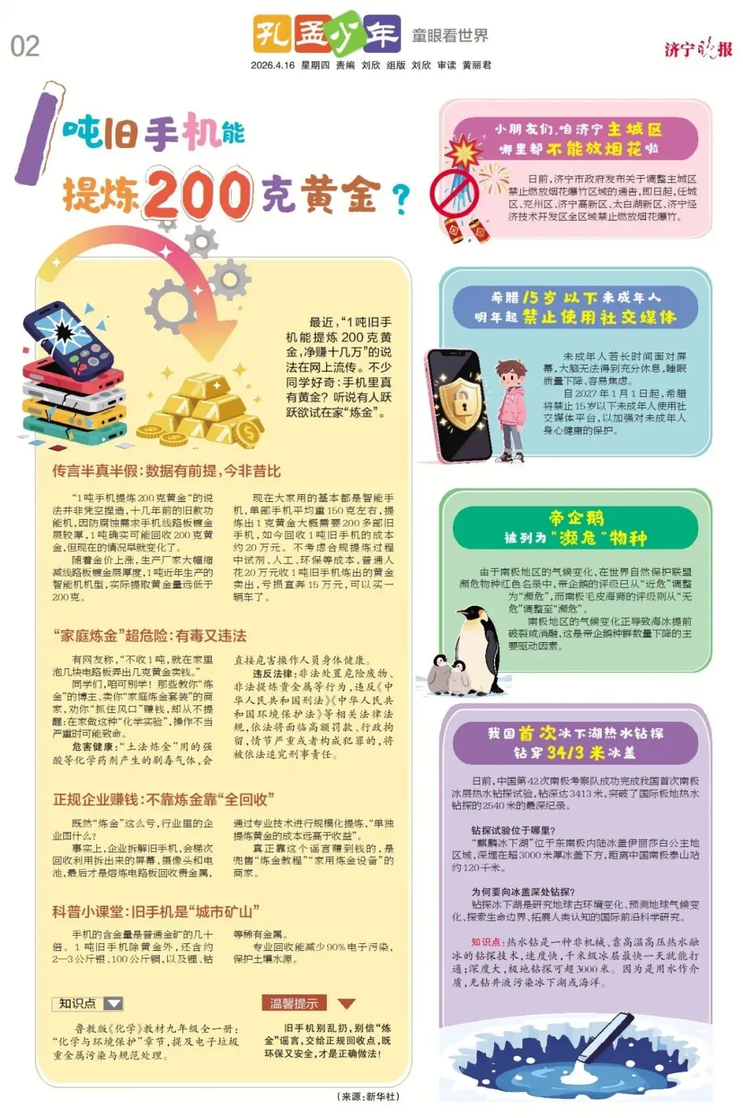 济宁晚报《孔孟少年》周刊电子版(4.16) 叮咚!新一期内容请查收!📦 同学们 先把地球仪转一转 看看世界上那些大名鼎鼎的 “咽喉水道”有多神奇 再戴上护目镜 揭秘废旧手机里藏着的“炼金奇迹” 接着拉响警报 翻翻超实用的《安全手册》 最后……阿嚏 漫天飞舞的杨絮柳絮又来捣乱 为什么不能把它们“一砍了之” 走吧,开启今天的奇妙探险—— 不用扫码,这俩视频“偷偷”藏在这里 动一动手指,关注我们呦 制作 |《孔孟少年》爆米花创想营