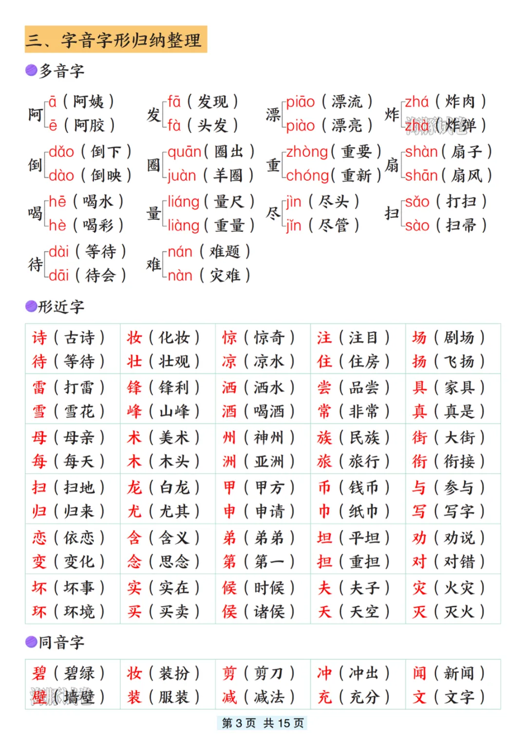 二年级(下)语文全册重点知识归纳 电子版可打印