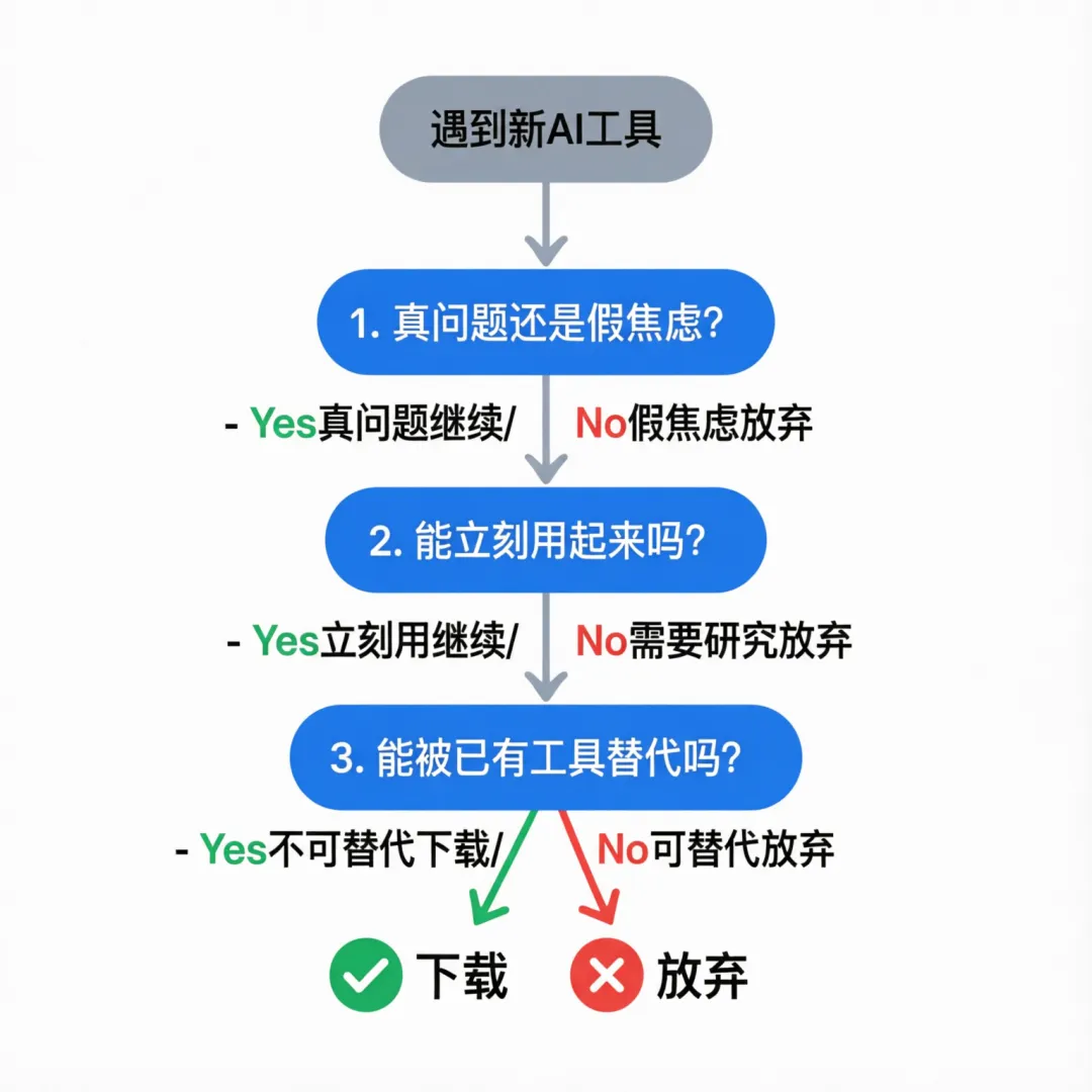 你不必追上每一个新工具。你不必因为没听说过某个AI就觉得自己落后。你不必把安全感建立在工具数量上。