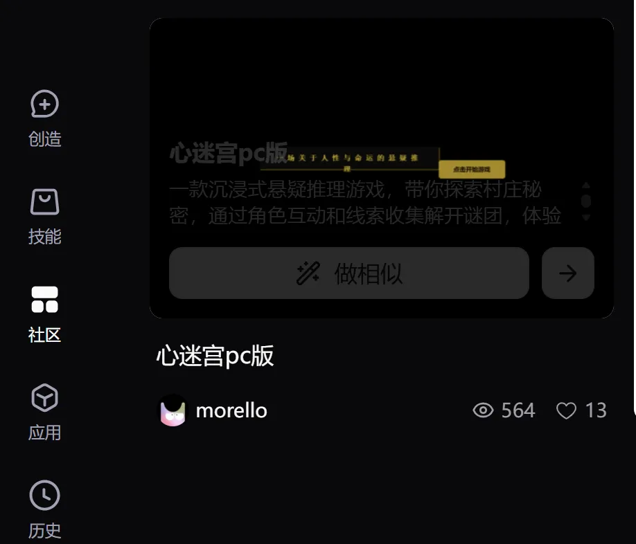 3. 社区模块——应用展示平台,支持一键”做相似”,看到好创意直接复刻改造。