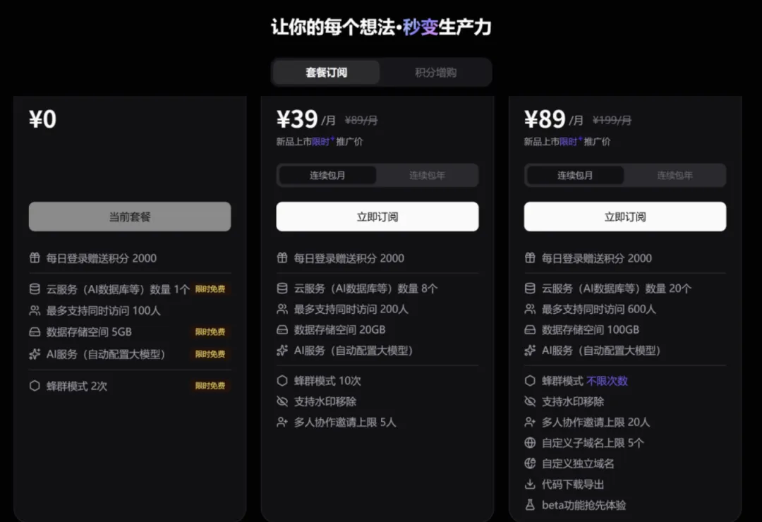 说白了,就是让你不用写一行代码,用自然语言描述想法,AI 自动生成完整的前端+后端+数据库,还能在阿里云上一键部署。