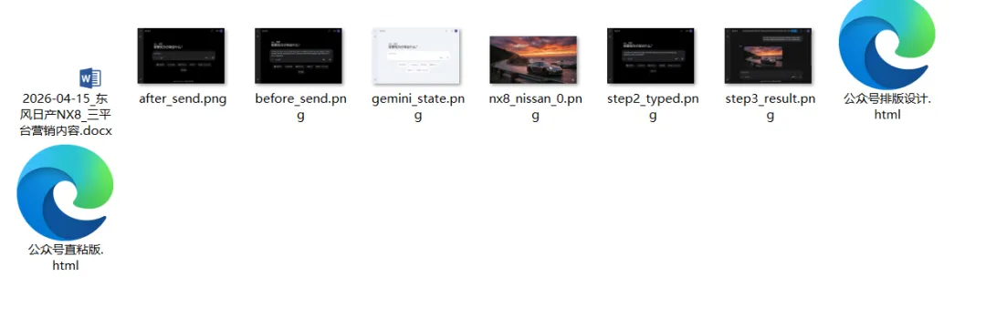 先说结论:今天下午我花了不到 30 分钟,一台东风日产 NX8,被我做成了 1 篇公众号长文、2 条抖音口播脚本、1篇小红书种草笔记、1 张 AI 生成的配图、1 份归档 .docx。