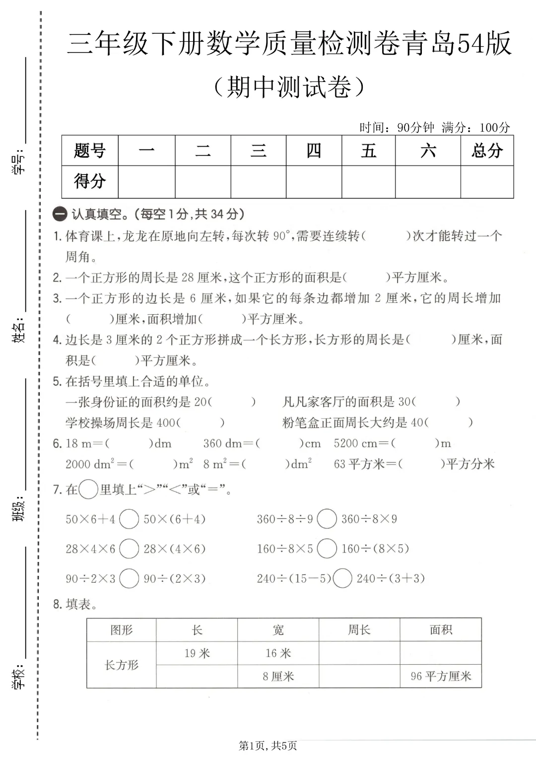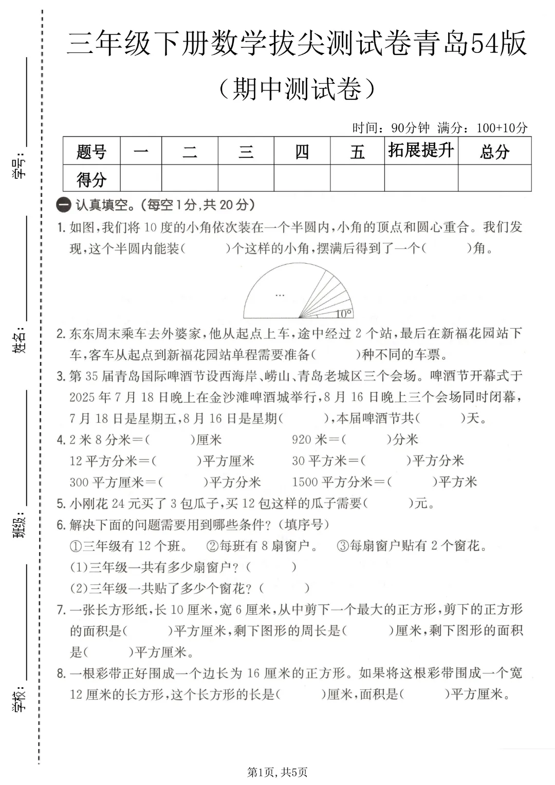 今天给家长们分享的是:26春三年级下册数学青岛54版《期中测试卷3套带答案》| 完整高清电子版可打印