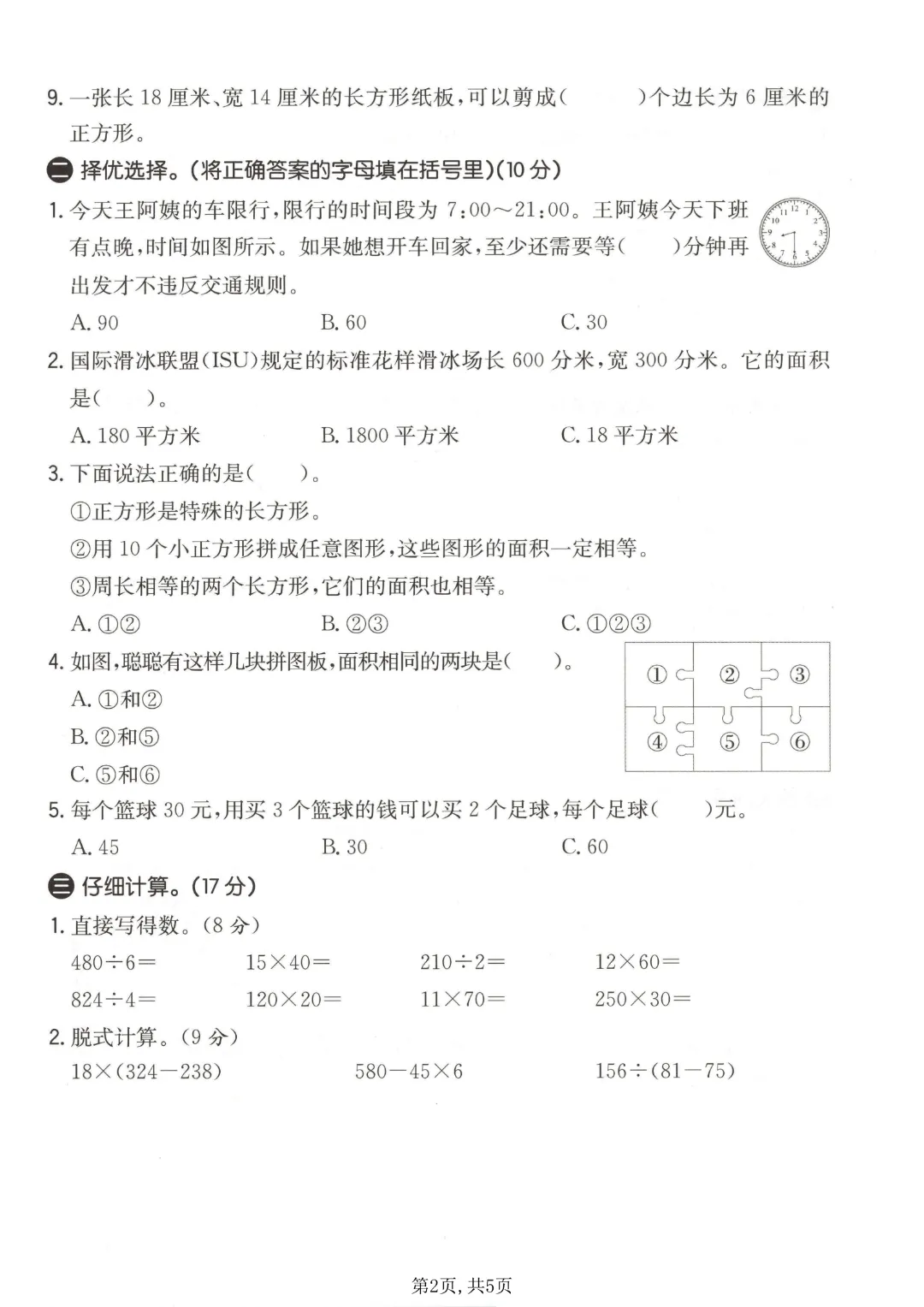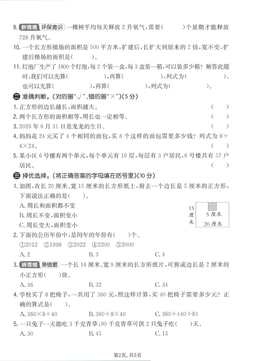 26春三年级下册数学青岛54版《期中测试卷3套带答案》| 完整高清可打印