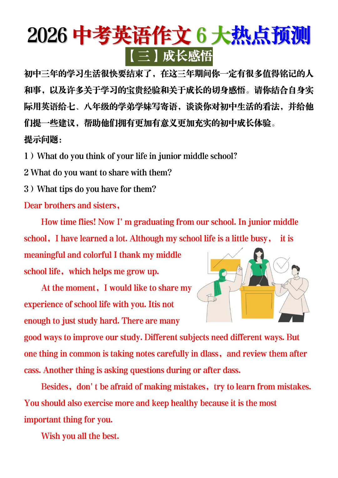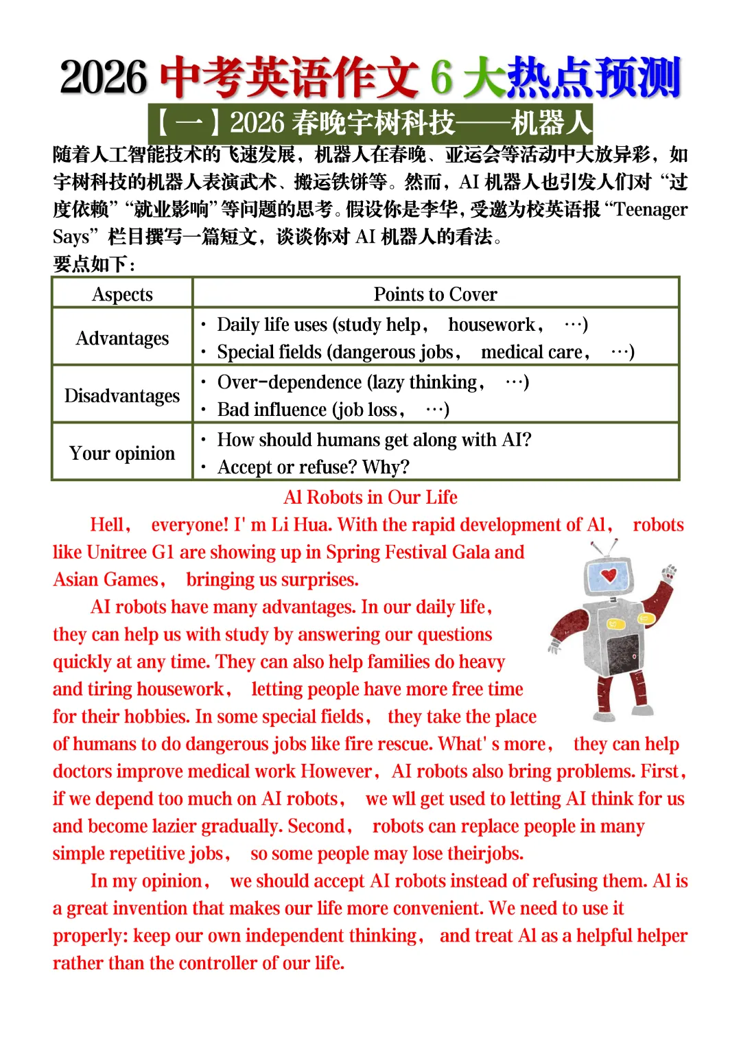 2026中考英语作文6大热点预测,电子版可打打印