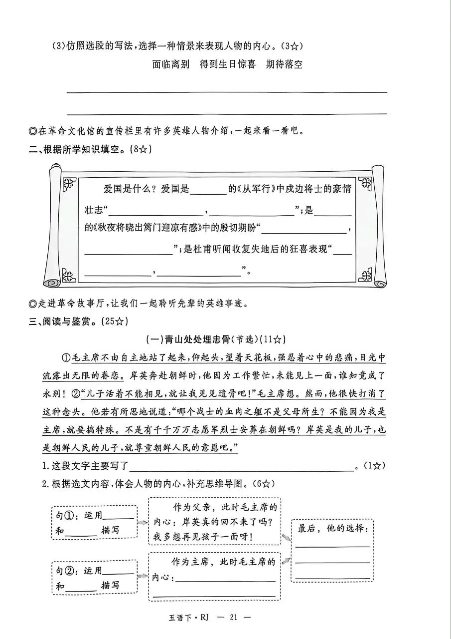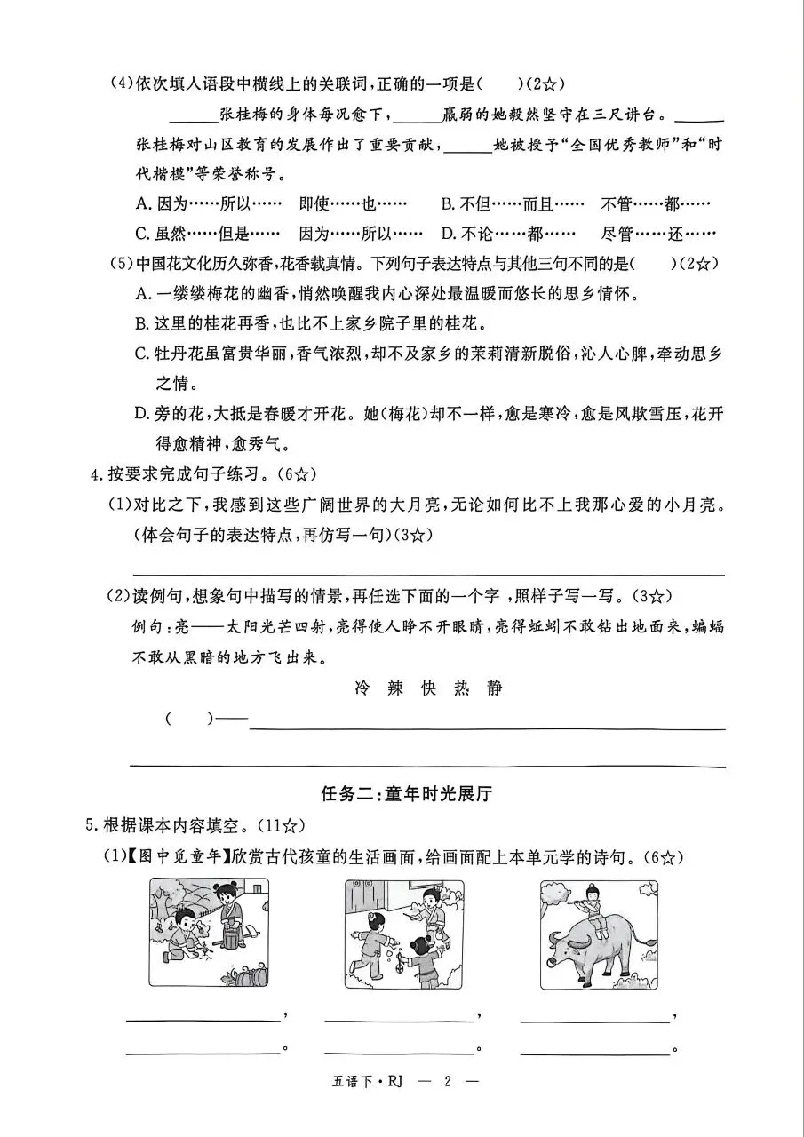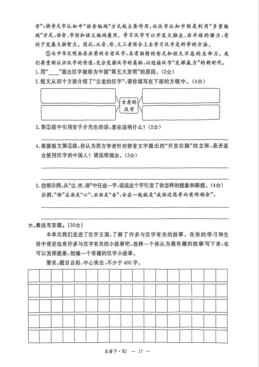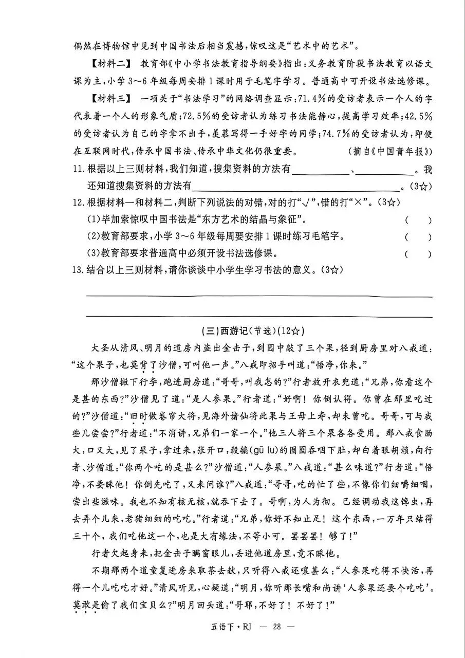 HI,今天分享的学习资料是:2026年春新版五年级下册人教部编版语文《1-8单元测试卷+期中期末综合素养评估卷》(共10套,含答案),高清完整电子版可打印。这套试卷能帮助孩子检测各个阶段知识点掌握情况,查漏补缺、巩固提升,建议家长打印出来让孩子练一练,熟悉题型、助力考取好的成绩吧!🌸欢迎分享到家长群或班级群,帮助更多孩子高效学习吧~