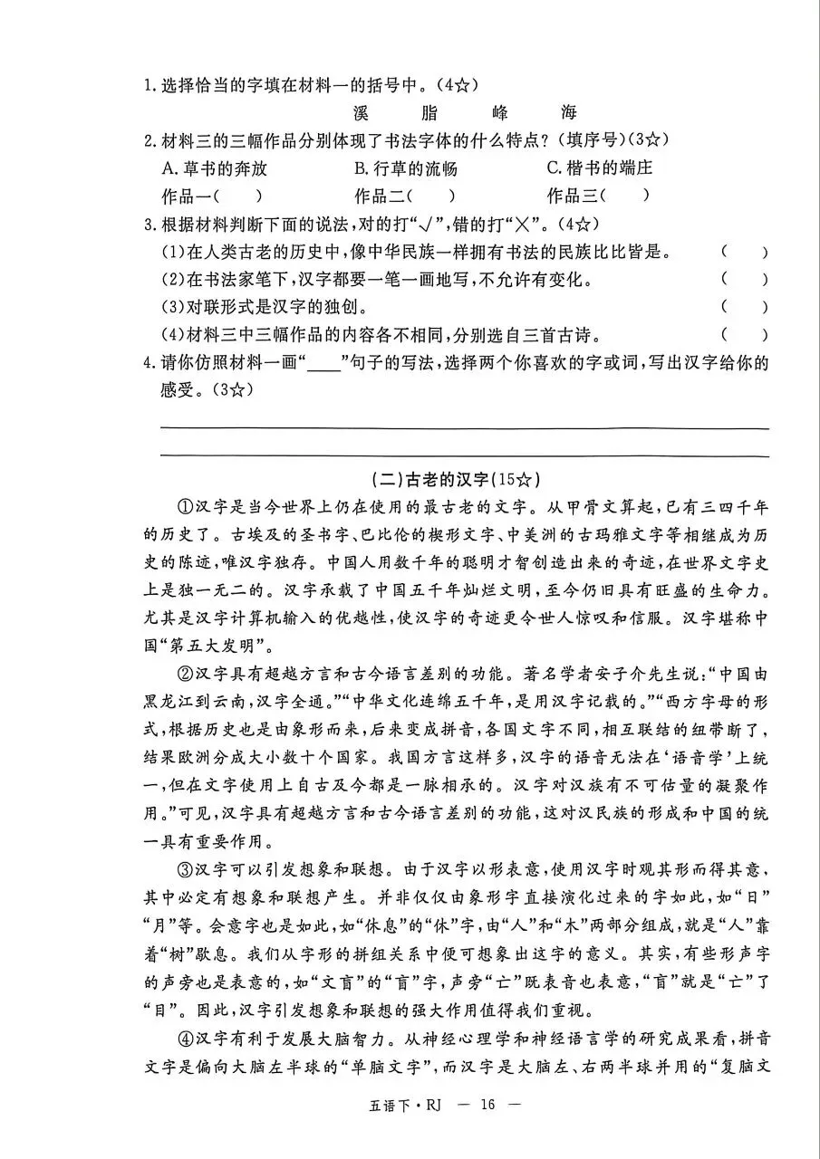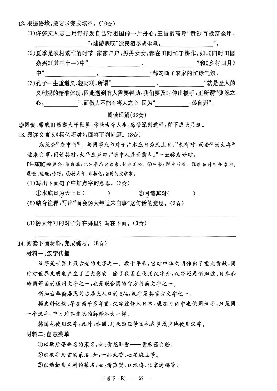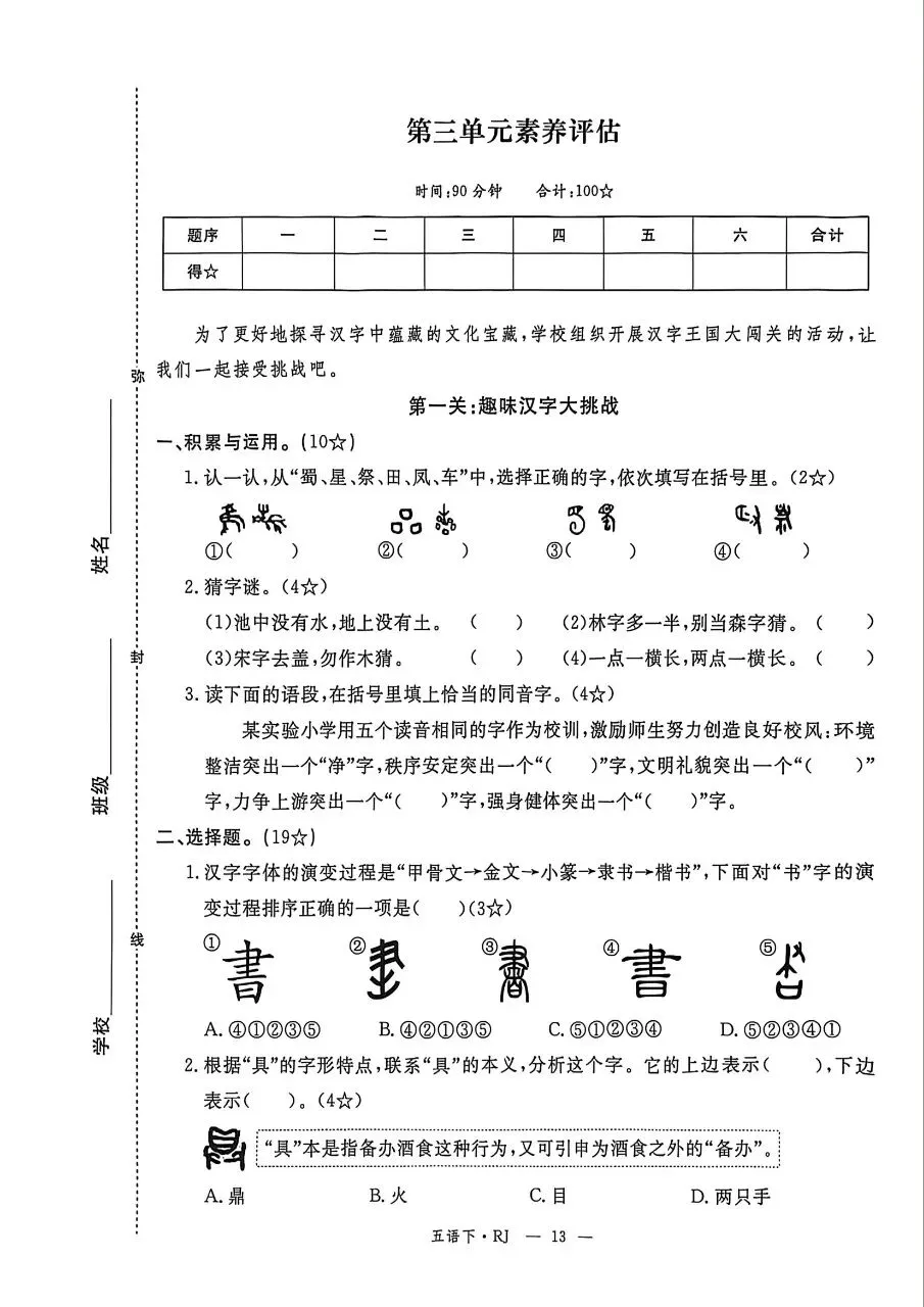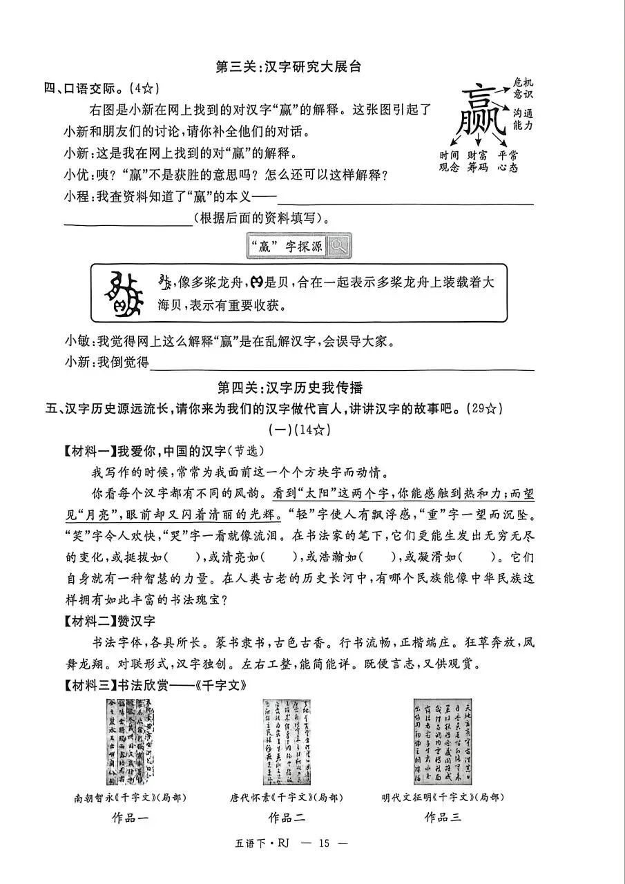 HI,今天分享的学习资料是:2026年春新版五年级下册人教部编版语文《1-8单元测试卷+期中期末综合素养评估卷》(共10套,含答案),高清完整电子版可打印。这套试卷能帮助孩子检测各个阶段知识点掌握情况,查漏补缺、巩固提升,建议家长打印出来让孩子练一练,熟悉题型、助力考取好的成绩吧!🌸欢迎分享到家长群或班级群,帮助更多孩子高效学习吧~